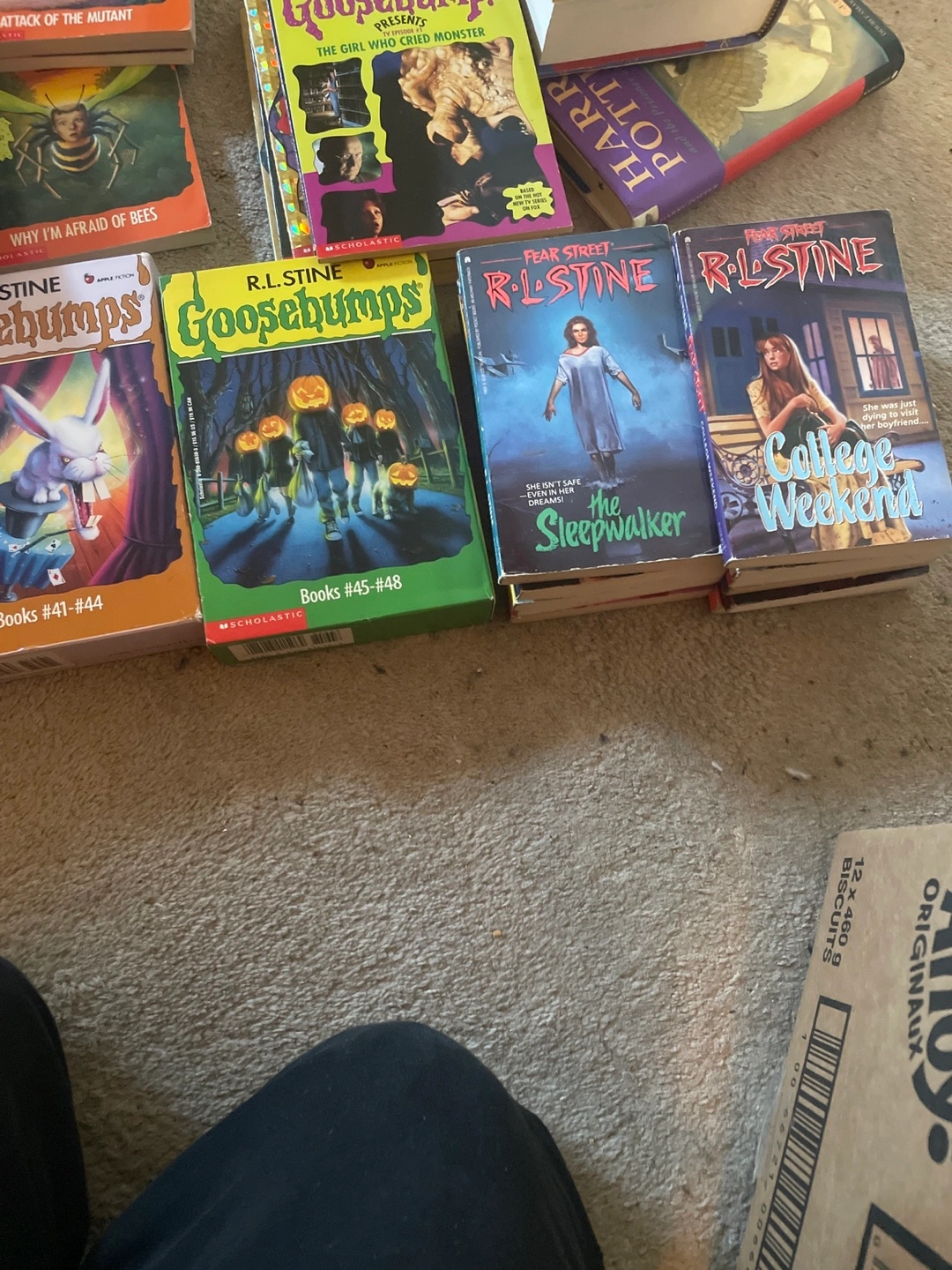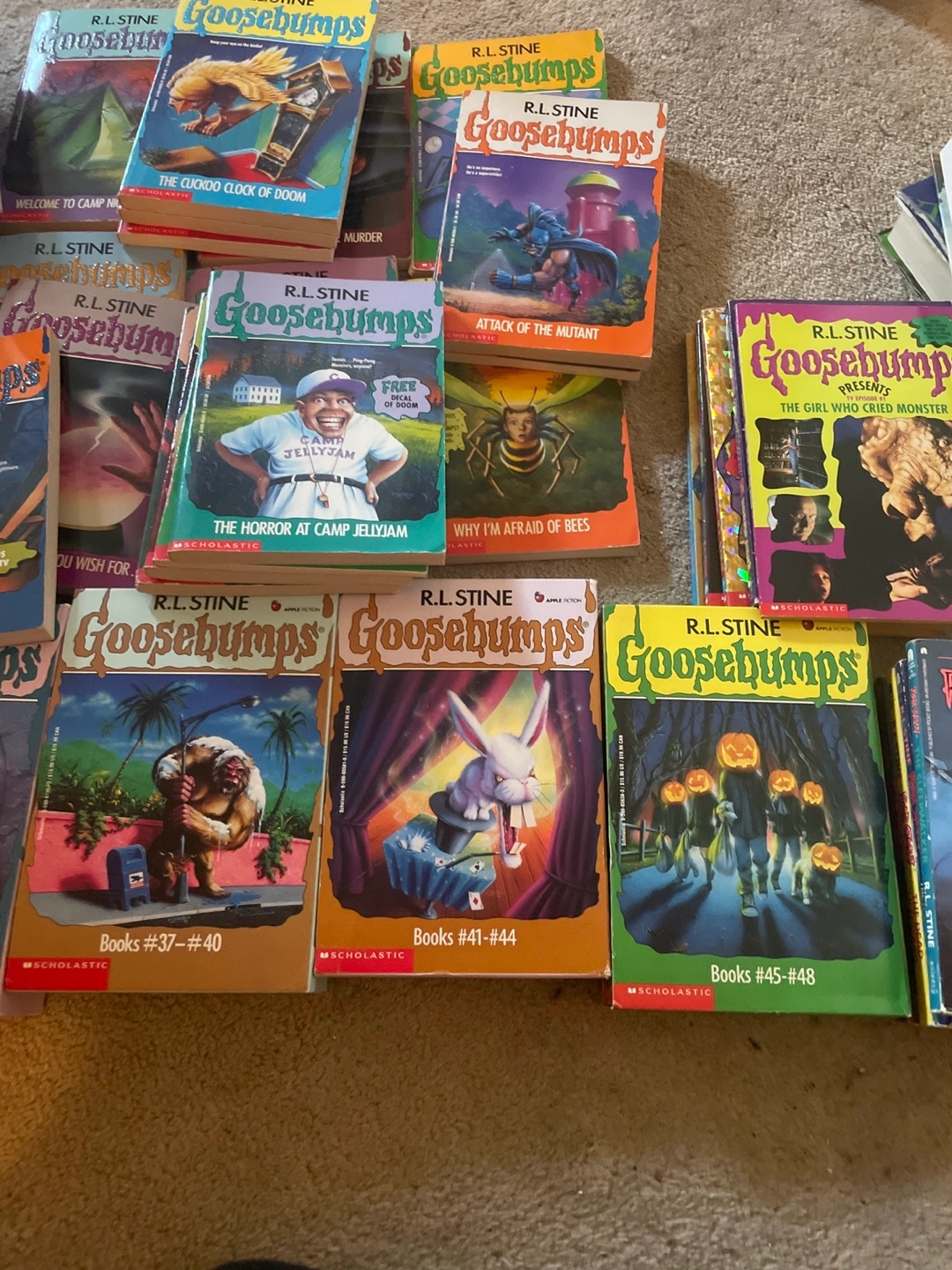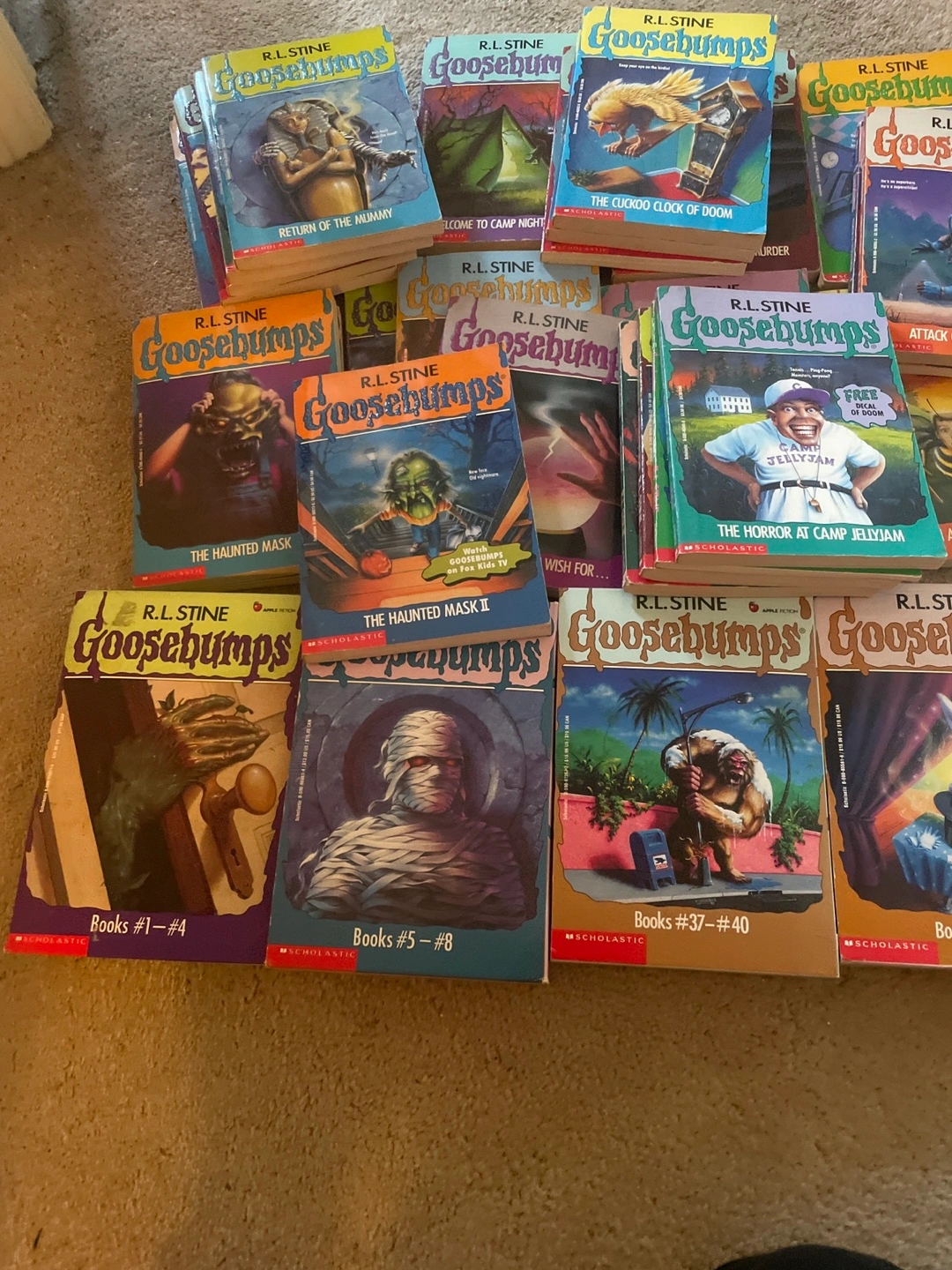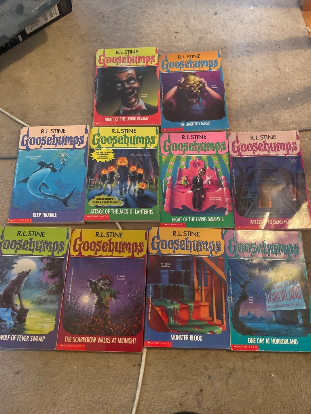 First edition print goosebumps. 1-48. Missing book #4. 11 first edition fear street novels and 4 of the rebooted goosebumps series books. All Original first editions and pretty good condition considering they are 30+ years old. Selling the lot together not individual book. Set includes the top 10 rarest RL stine books. 80 percent of the novels mint condition still. All bought from scholastic book order in the 1990s. Im the only owner of these books