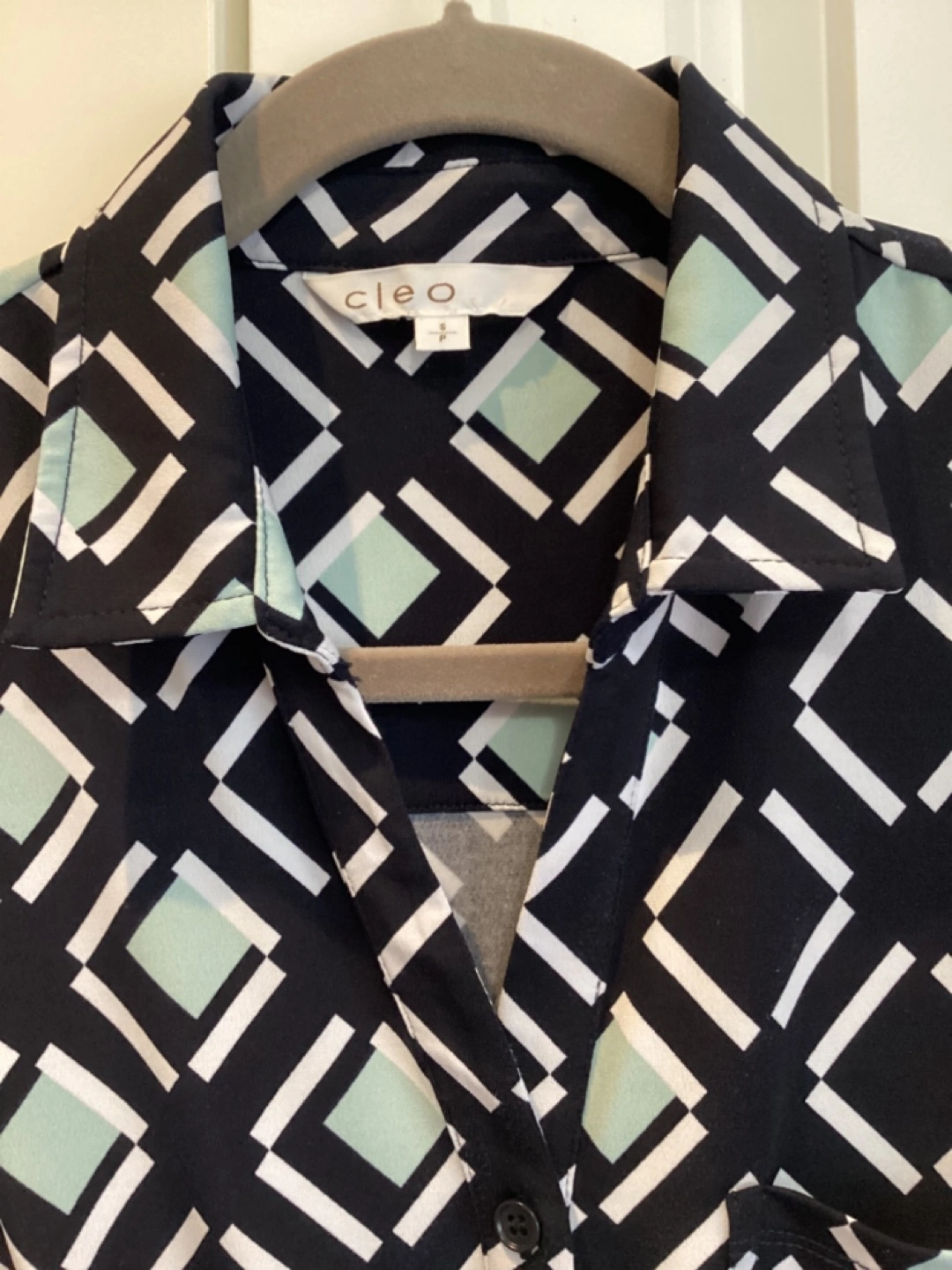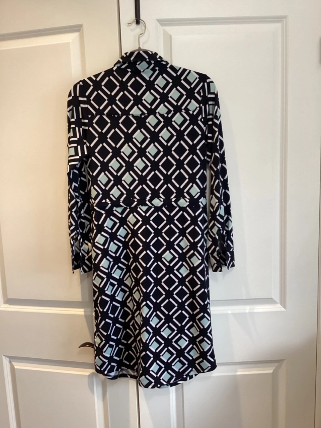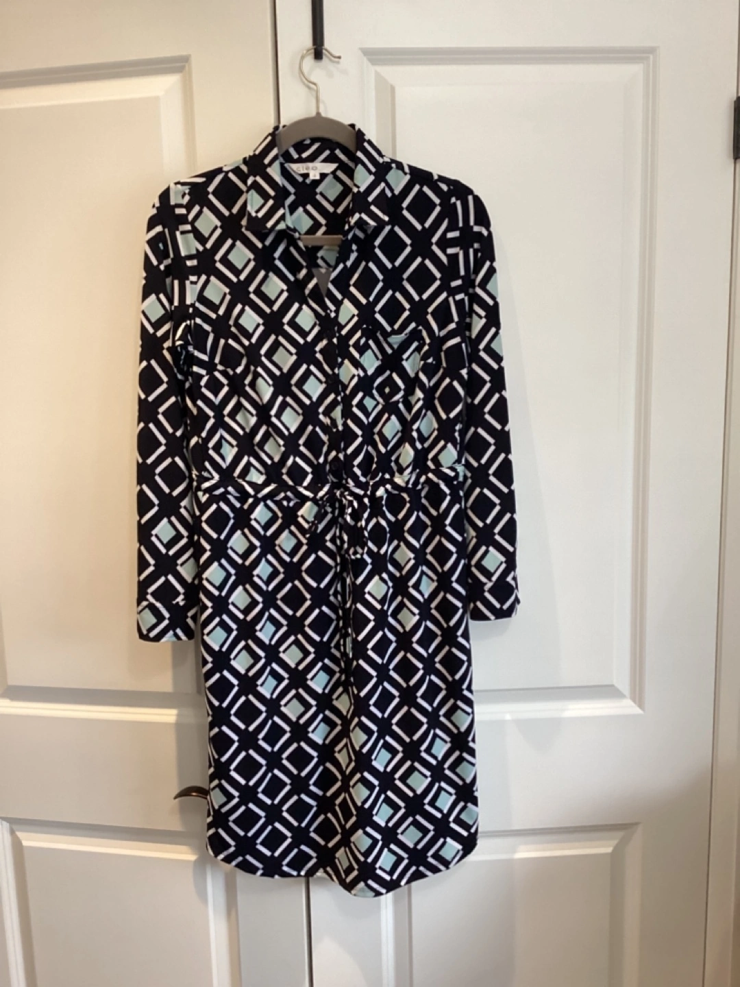 Cleo Jersey Shirtdress, only worn a few times, I’m a sewer so I added a lining to the skirt of the dress, sleeves can be rolled up and secured with a buttoned tab, buttons to the waist, drawstring at waist, size Small, $15 or best offer. Chest 38” Waist 36” before drawstring is pulled Centre back length 38 1/2”