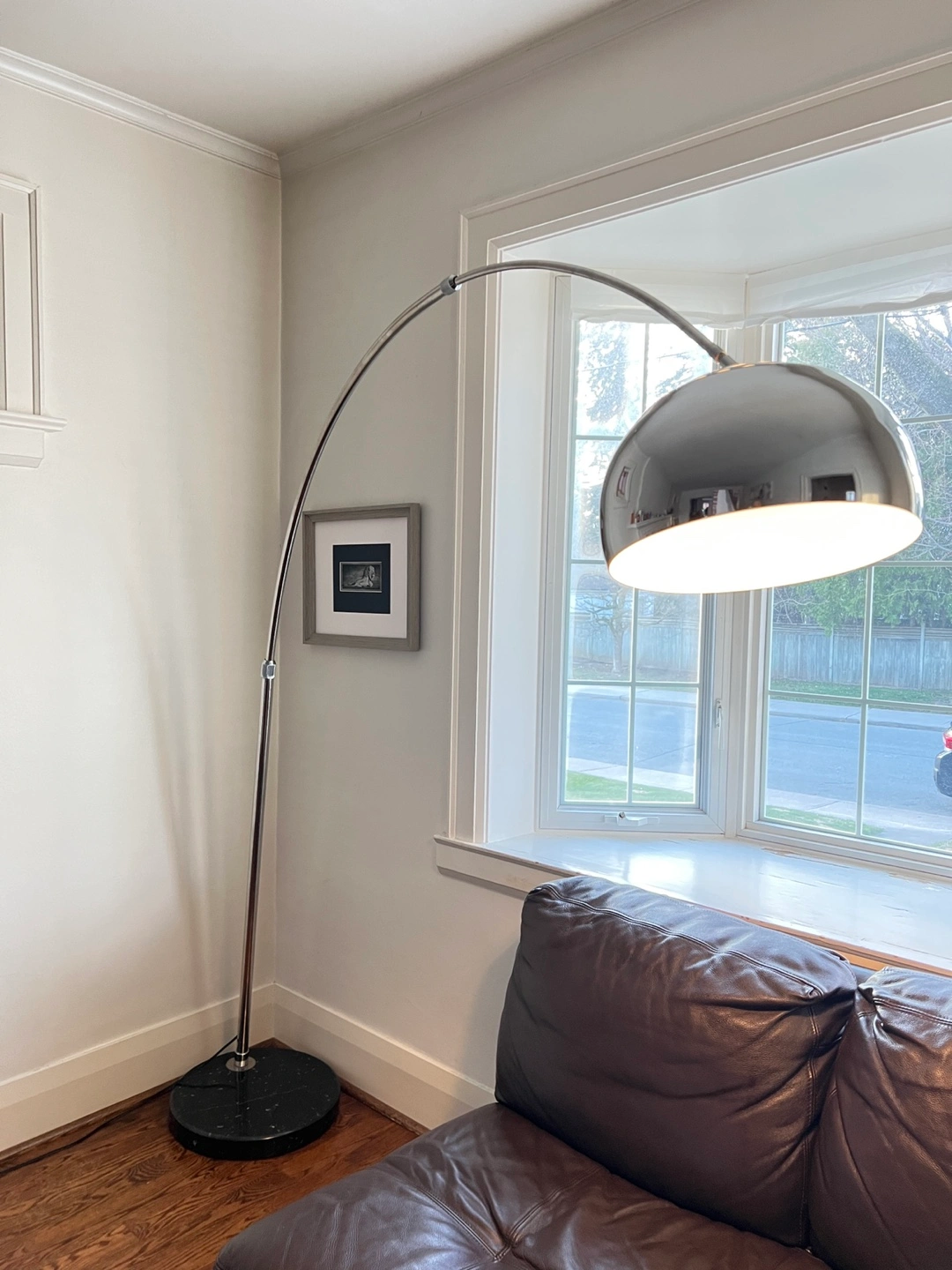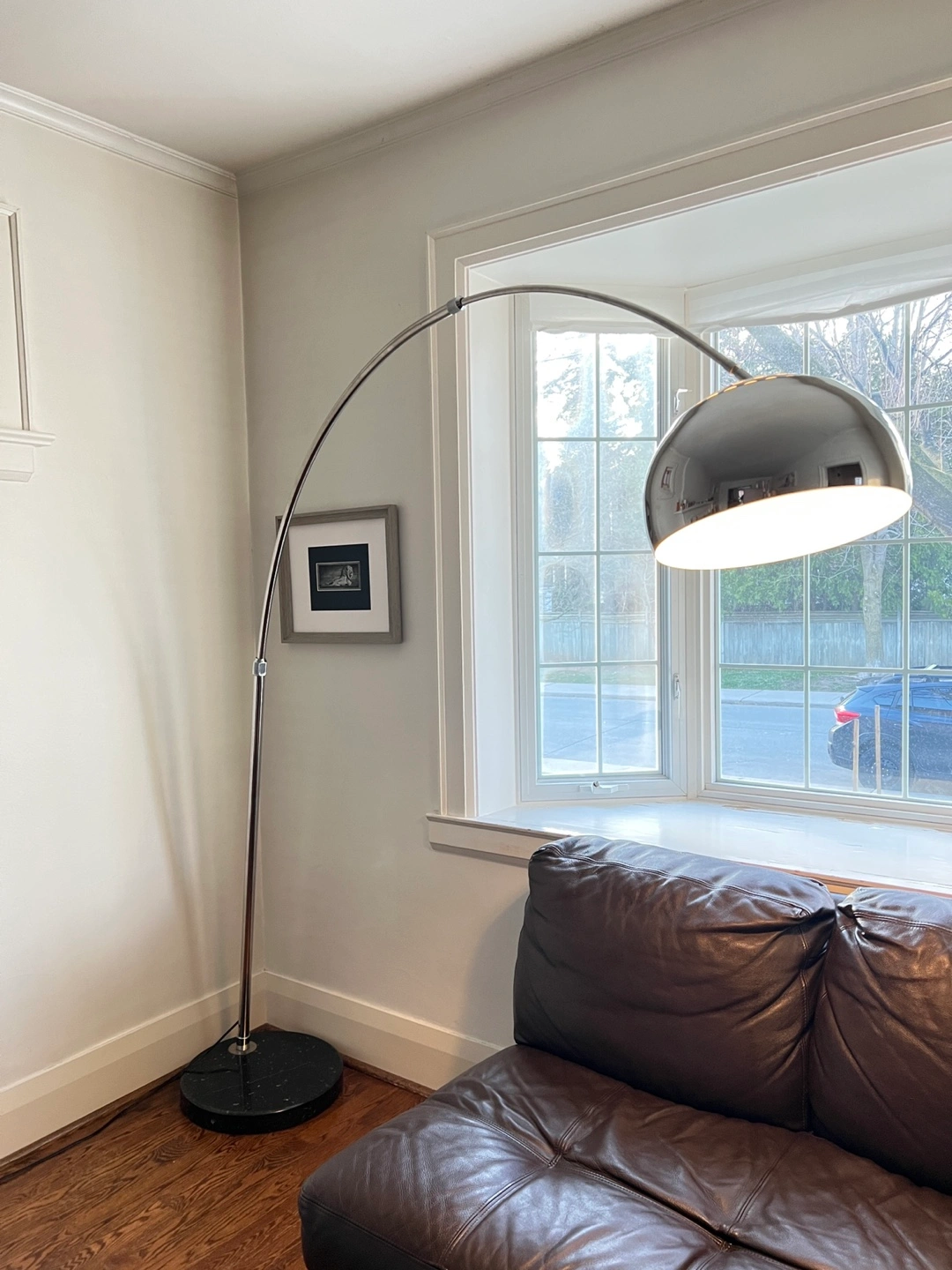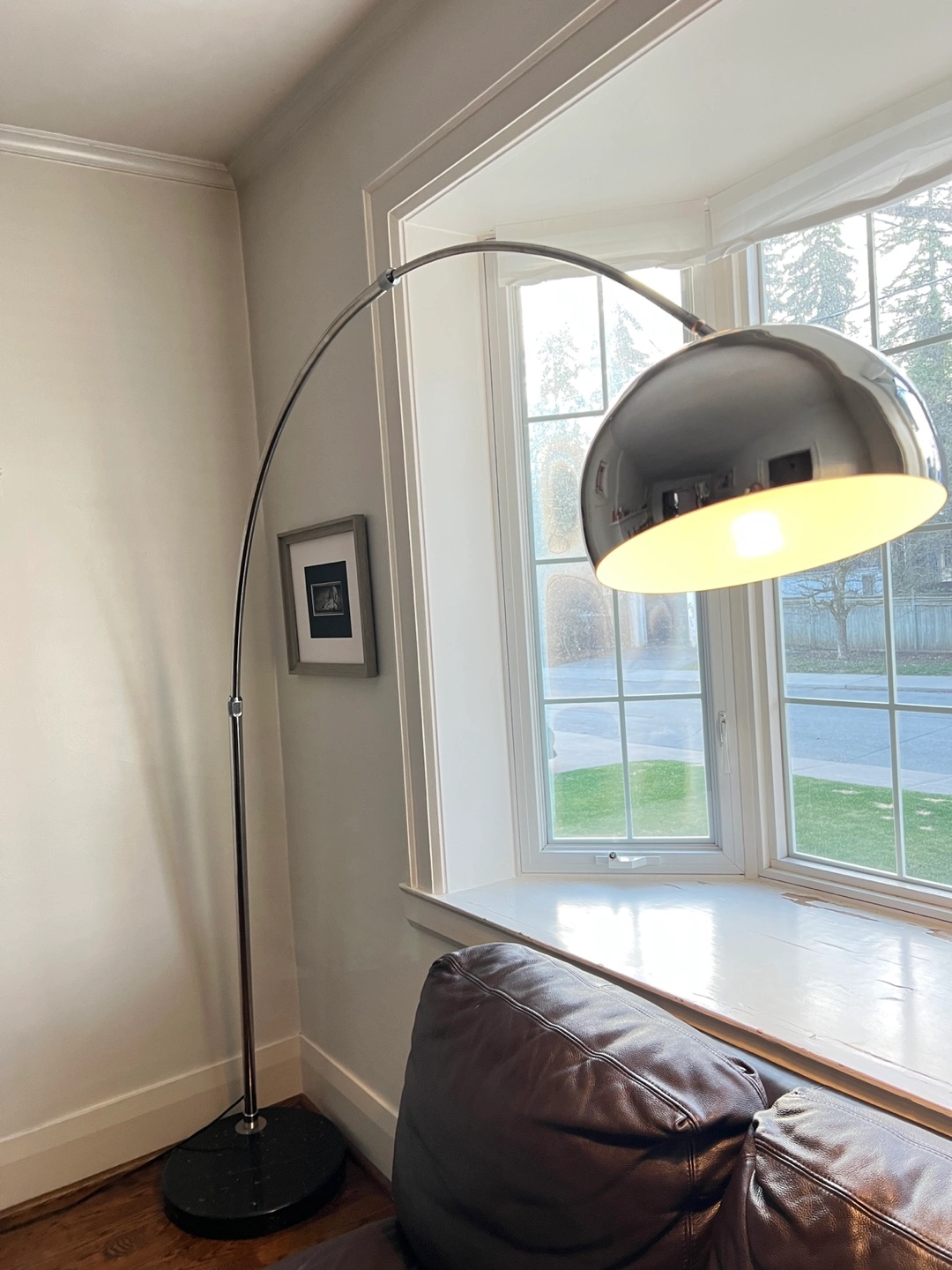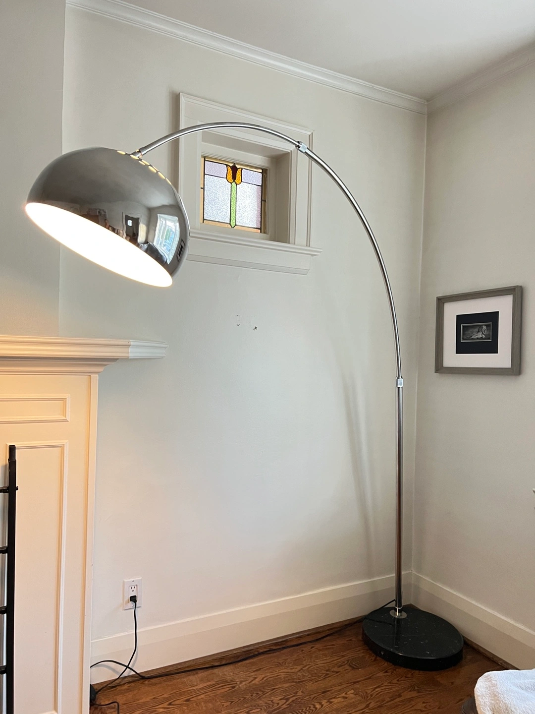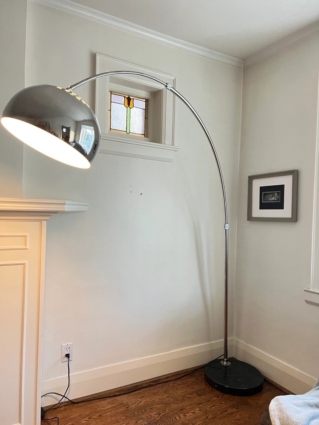 Content Sale! Everything Must Go! Pick up today! Sunday April 26 - 10am - 7pm 277 Snowdon Ave All Reasonable Offers Accepted 👍 Sleek chrome finish. Large, dome-shaped shade. Marble base. Very Heavy. Needs large vehicle for transportation (approximately 6ft in length). The main rod that inserts into the base leans quite a bit (see the 2nd last pic) and the 2 screws that tighten the rods into each other are a challenge to tighten. The light works perfectly but there are those 2 issues. If you’re handy and strong you may be able to get it further upright.. otherwise, as mentioned, it works perfectly and looks fabulous.. it just doesn’t stand as upright as it could. Sold as is.