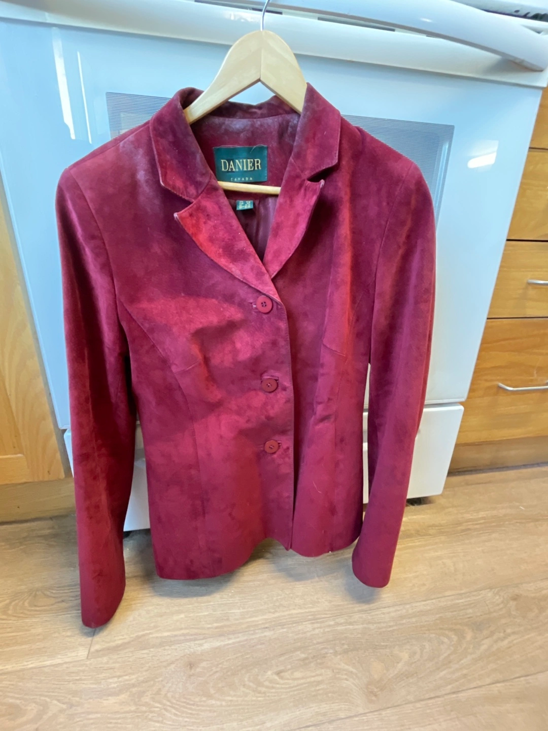 Vintage Burgundy suede blazer. Long sleeves. Button closure. Made in Canada. Excellent condition. Pick up and cash only accepted Vintage Jacket Genuine Danier Leather Jacket Women’s Casual Jacket Women’s Casual Coat Burgundy coat Dress Jacket