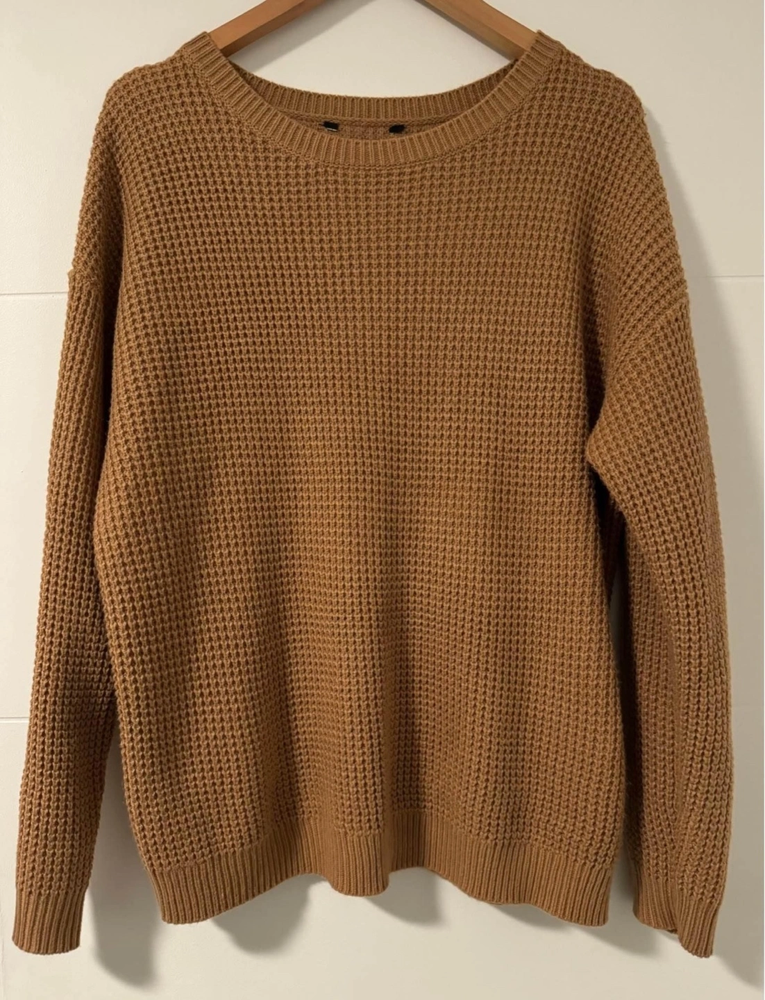 Urban Outfitters out from under oversized brown waffle knit sweater size small In good overall condition! Took off the tags because they were long lol. Very soft and cozy, fits oversized so it’ll fit if you’re typically a medium too! Bought for $61+tax Price is firm, cash only please. Pickup downtown Toronto/Jarvis & Gerrard/Yonge & Dundas or we can arrange to meet along TTC line 1.