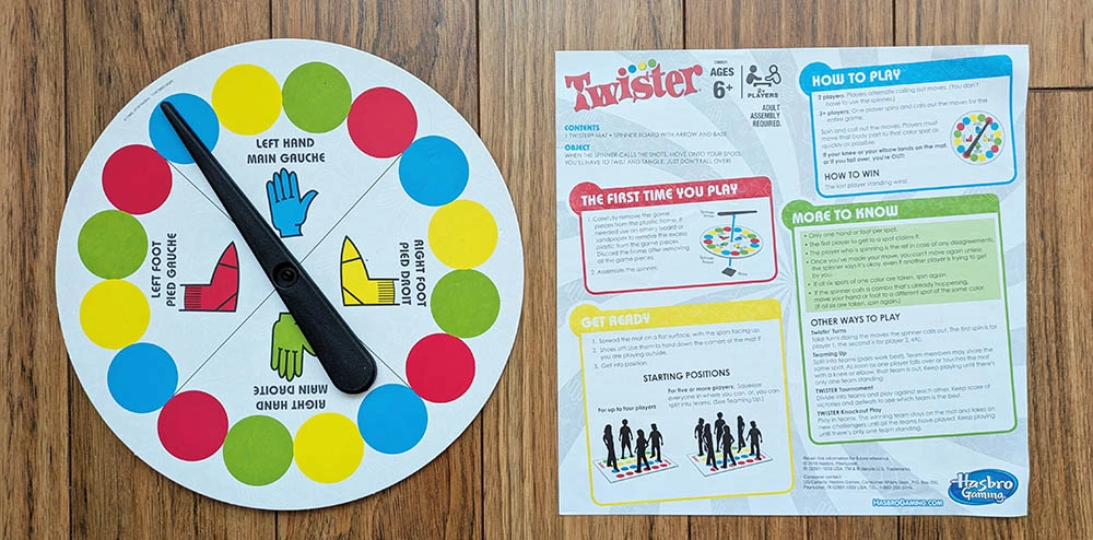 "Twister". An inventory was done and it is complete with: - 1 game mat - 1 spinner - bilingual (English/French) instructions - box All game parts and pieces are in excellent condition. The box is in excellent condition as well. 2+ players, ages 6+ Copyright 2018 by Hasbro. See pics. $10. Pick-up in downtown Toronto (Richmond / Sherbourne area).