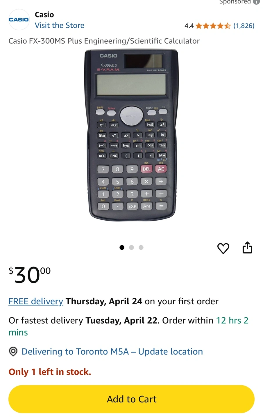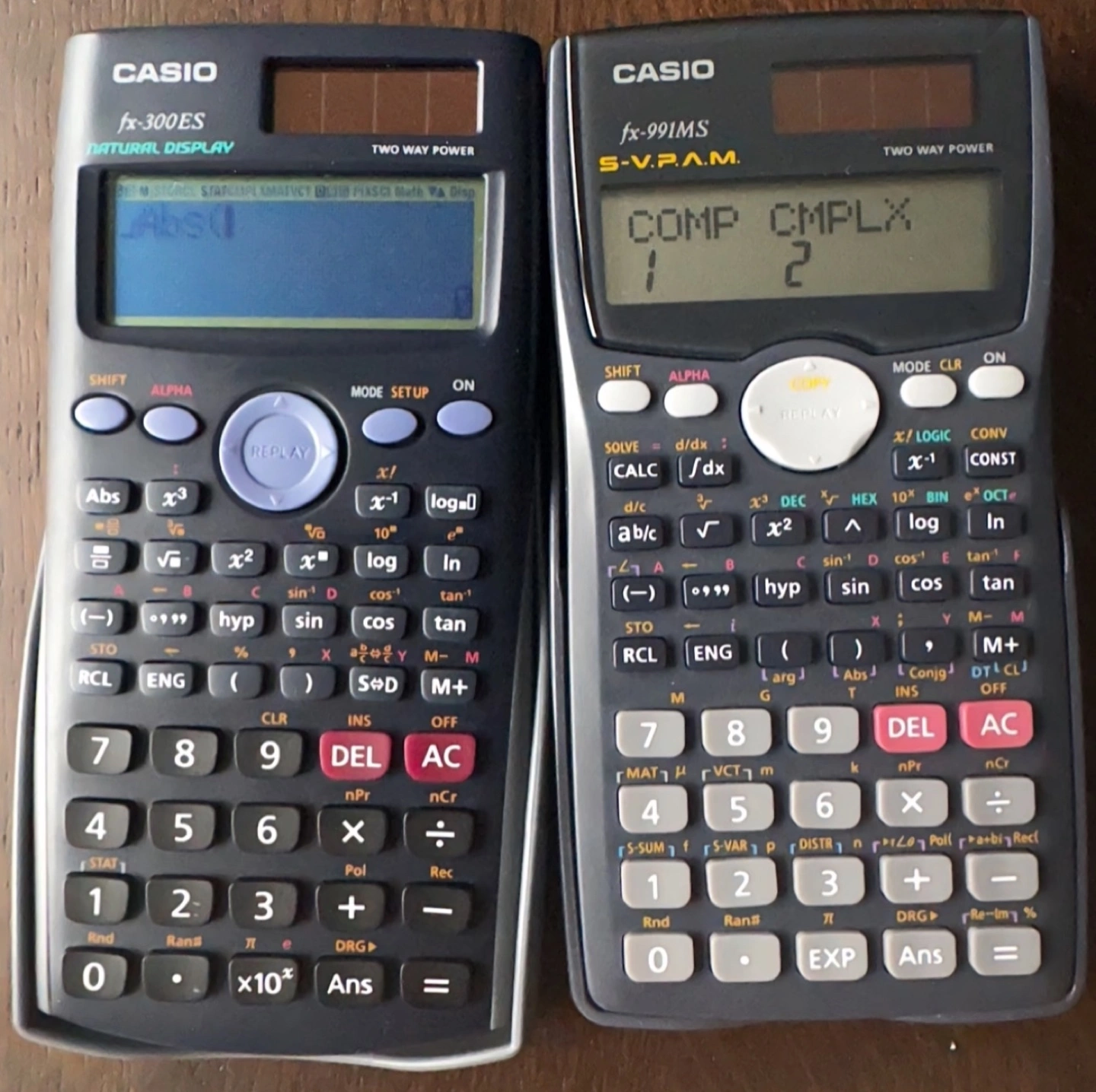 Casio scientific calculators. One is the FX-300ES $15, the other the FX-991MS $20 . Both feature two-way power and various functions. Excellent for students or professionals.