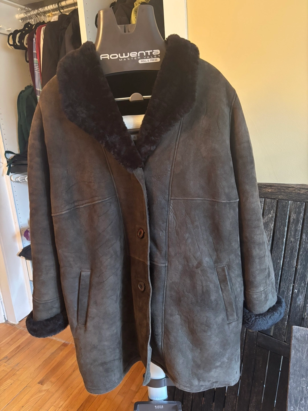 Mocha chocolate brown genuine sheepskin coat. Amazing cozy feel. Features a classic design, button closure, and a luxuriously soft real shearling interior. Made in Canada. ๐ Size Large but relaxed fit can fit XL easily. Pre-loved condition. Smoke and pet free home. Only available for collection please. Thank you!