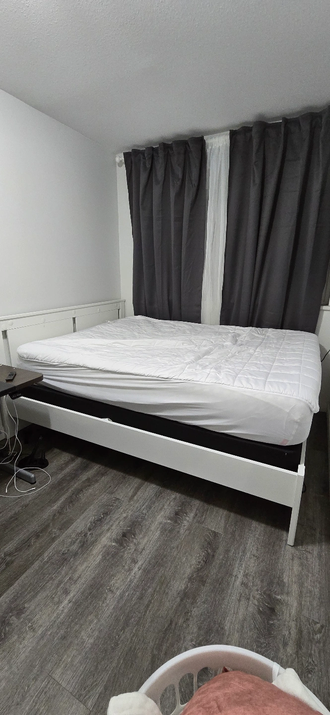 IKEA Queen Size Bed Frame, Mattress not included. White queen bed frame. Good condition. Easy assembly and disassembly. Reason for selling, too big for the room. Serious Inquiry Only. Still available if the post is up. Pick up only Queensborough, Newwestmister