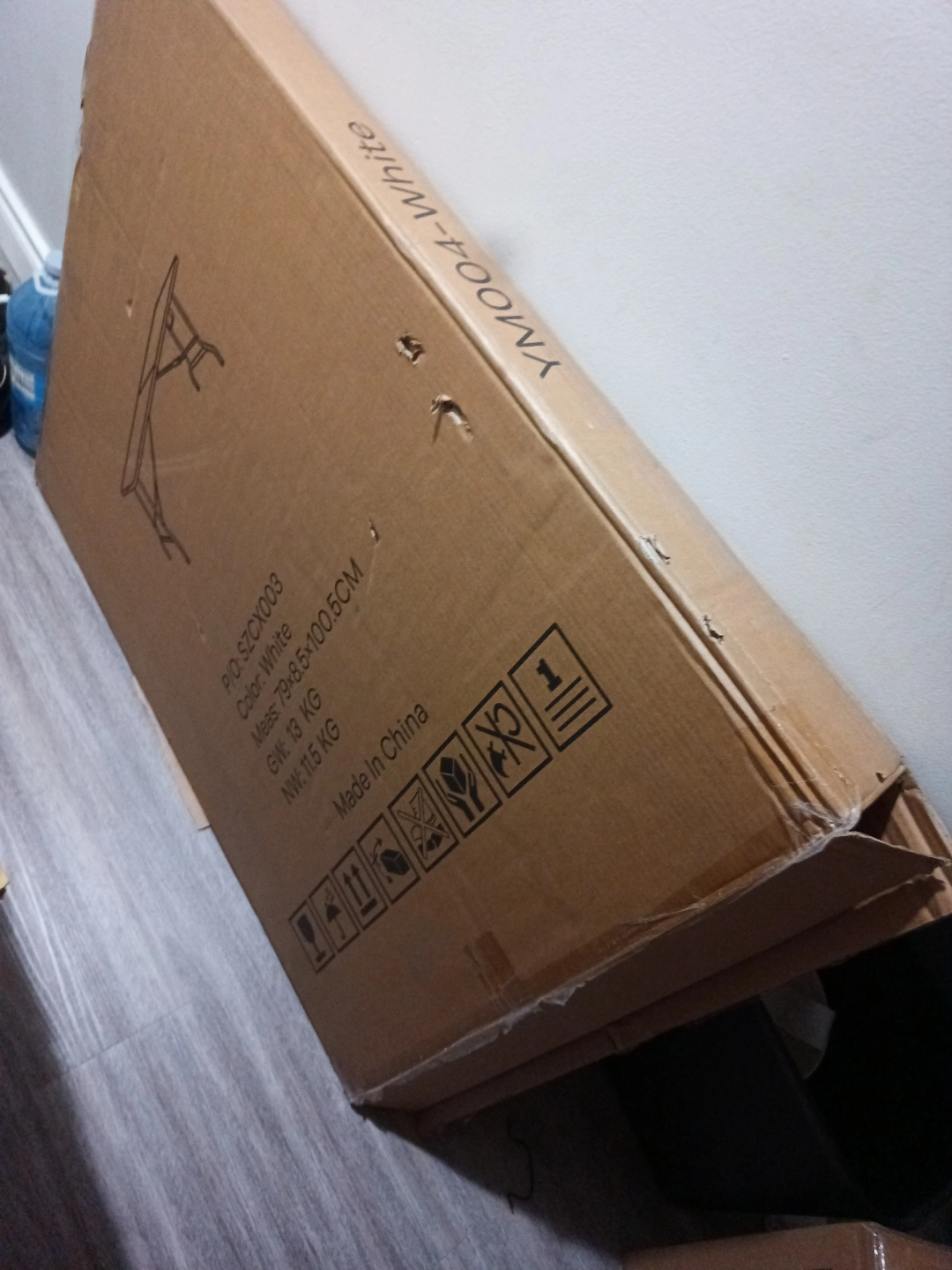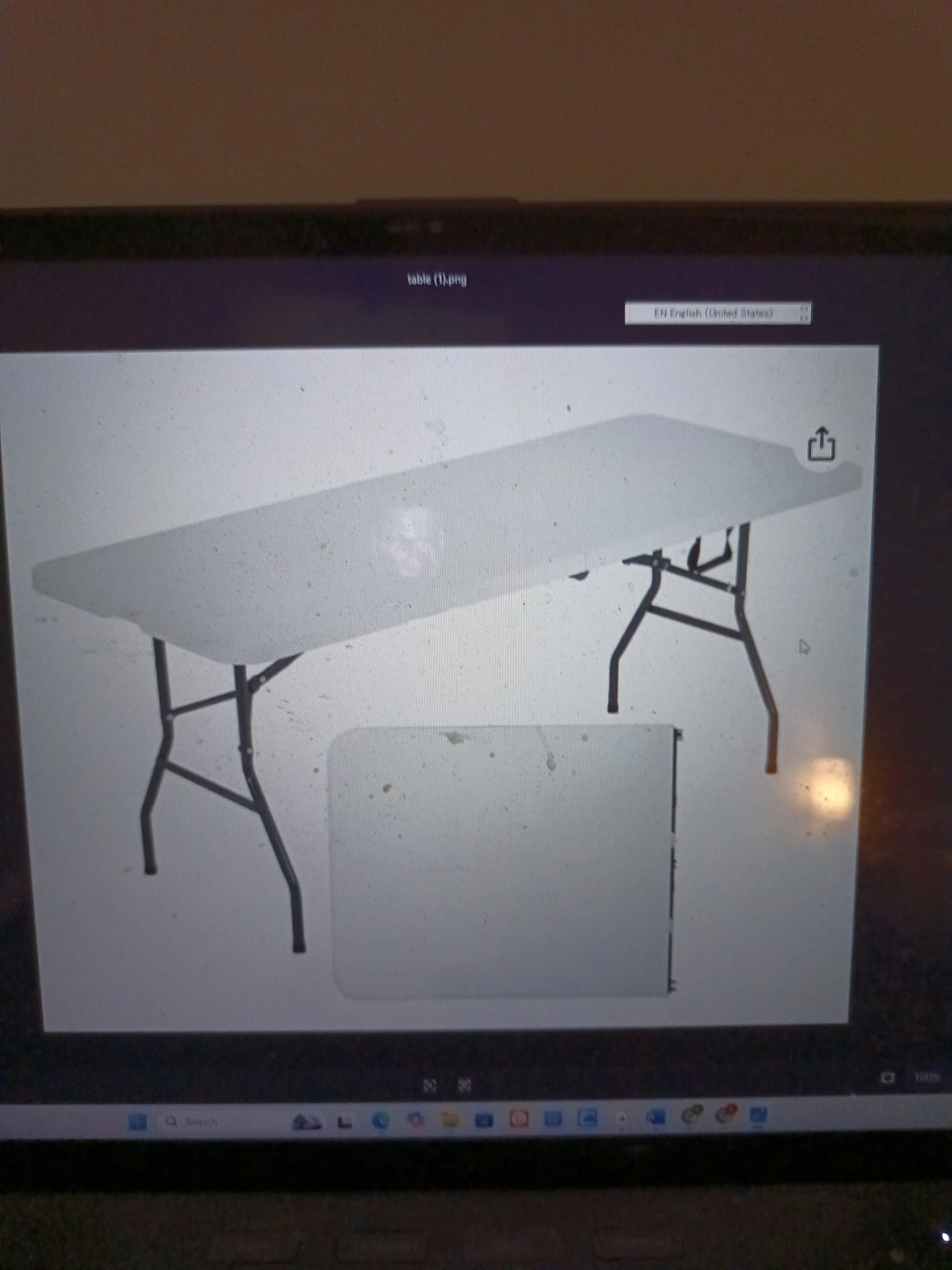 Brand new folding table, still in original packaging. White top, black legs. Easy to store. Pick up yourself. Add 5 dollars for 2 new trash cans.