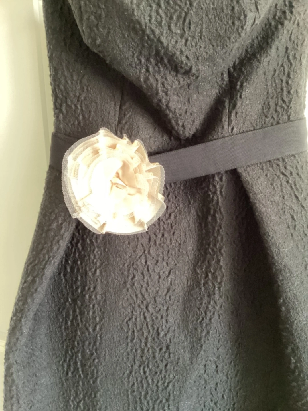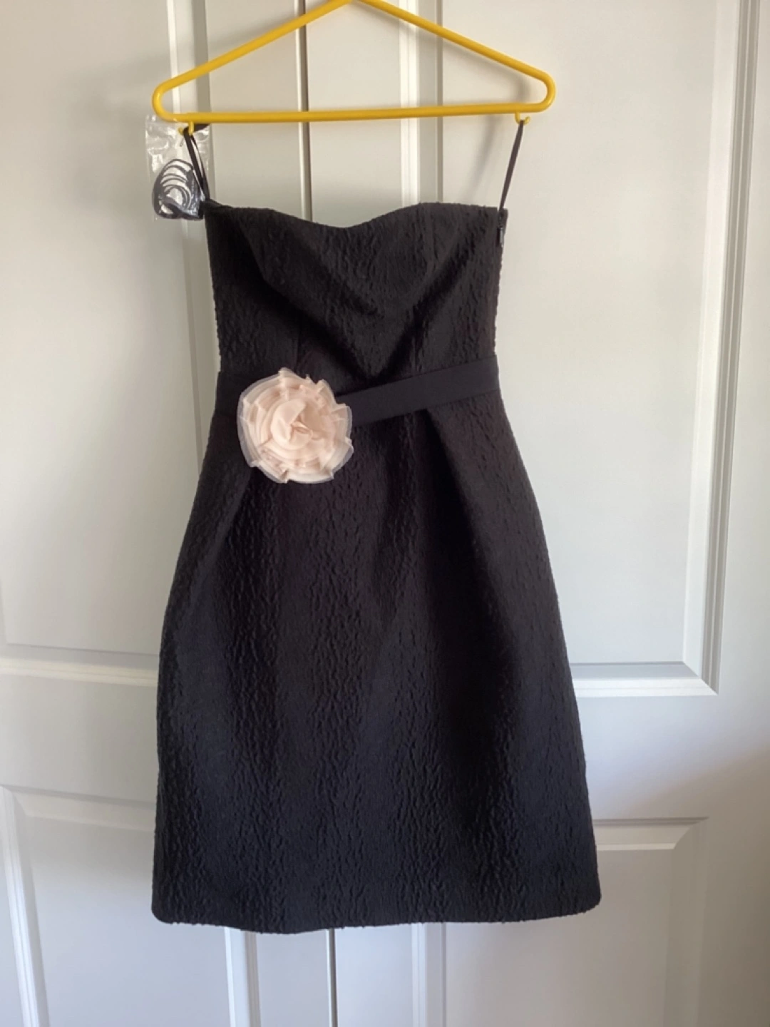 Lord & Taylor Strapless Party Dress, brand new without tags, belt with flower, includes straps, lined, side invisible zipper, Size 0, $30 or best offer. Bust 31 1/2” Waist 27 1/2” Centre back length 32 1/2”
