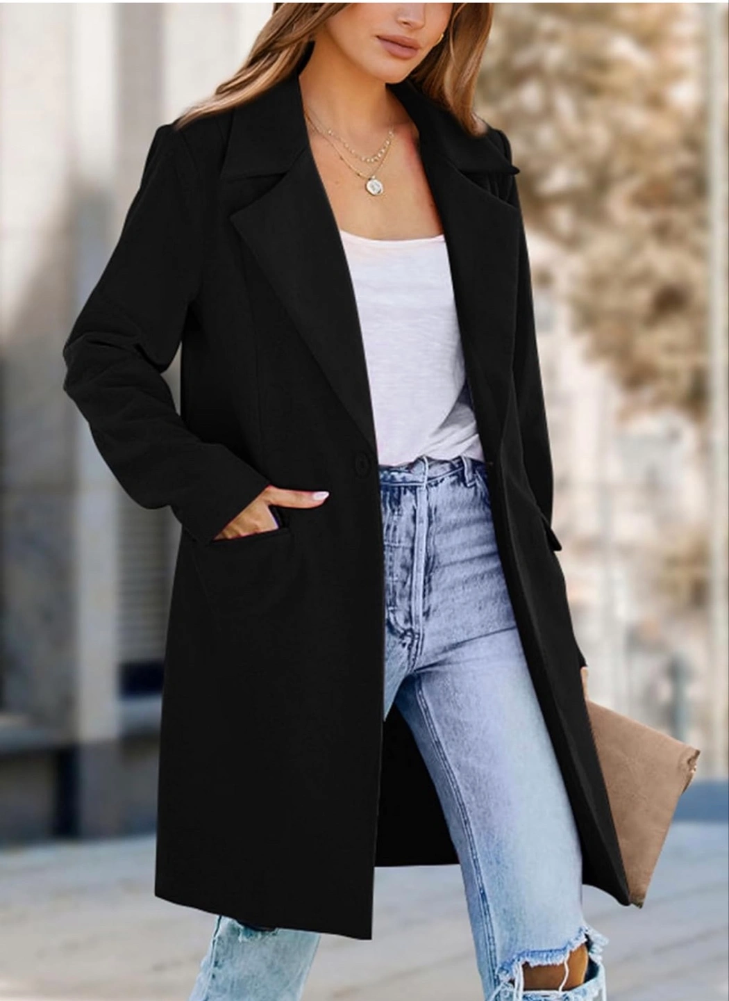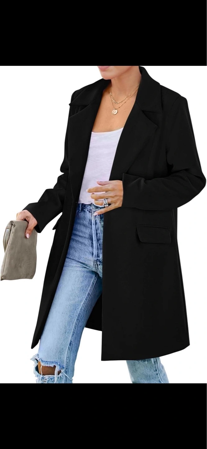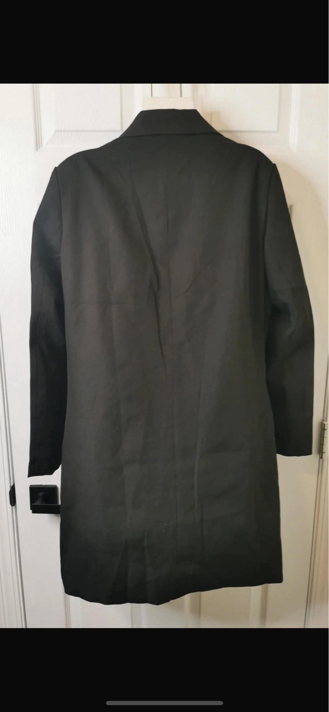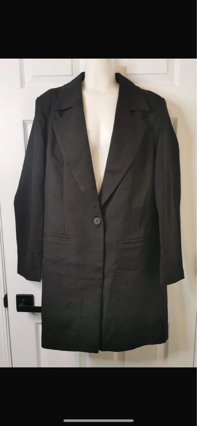 New! Retails for $70 Stylish longline blazer coat. Black colour. Features a notched lapel collar, single button closure, and side pockets. Long sleeves. Great for layering. Mid-Length Blazer Jackets For Women Made Of High-Quality Polyester Blend Fabric And Designed With A Smooth Lining, Guaranteeing The Comfort And Durability While Improving The Overall Look And Feel. Single button closure. Two pockets. Long sleeves. Relaxed fit. Perfect for layering.