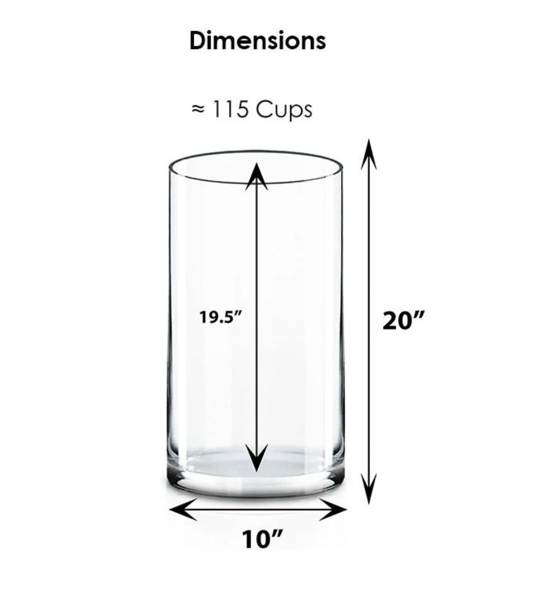Large clear glass cylinder vase. Perfect for floral arrangements or home decor. Measures approximately 10 inches in diameter and 20 inches tall. I have two 15$ for all Glass Cylinder Vase. D-10" H-20", Wedding Centerpiece, decorative art display.