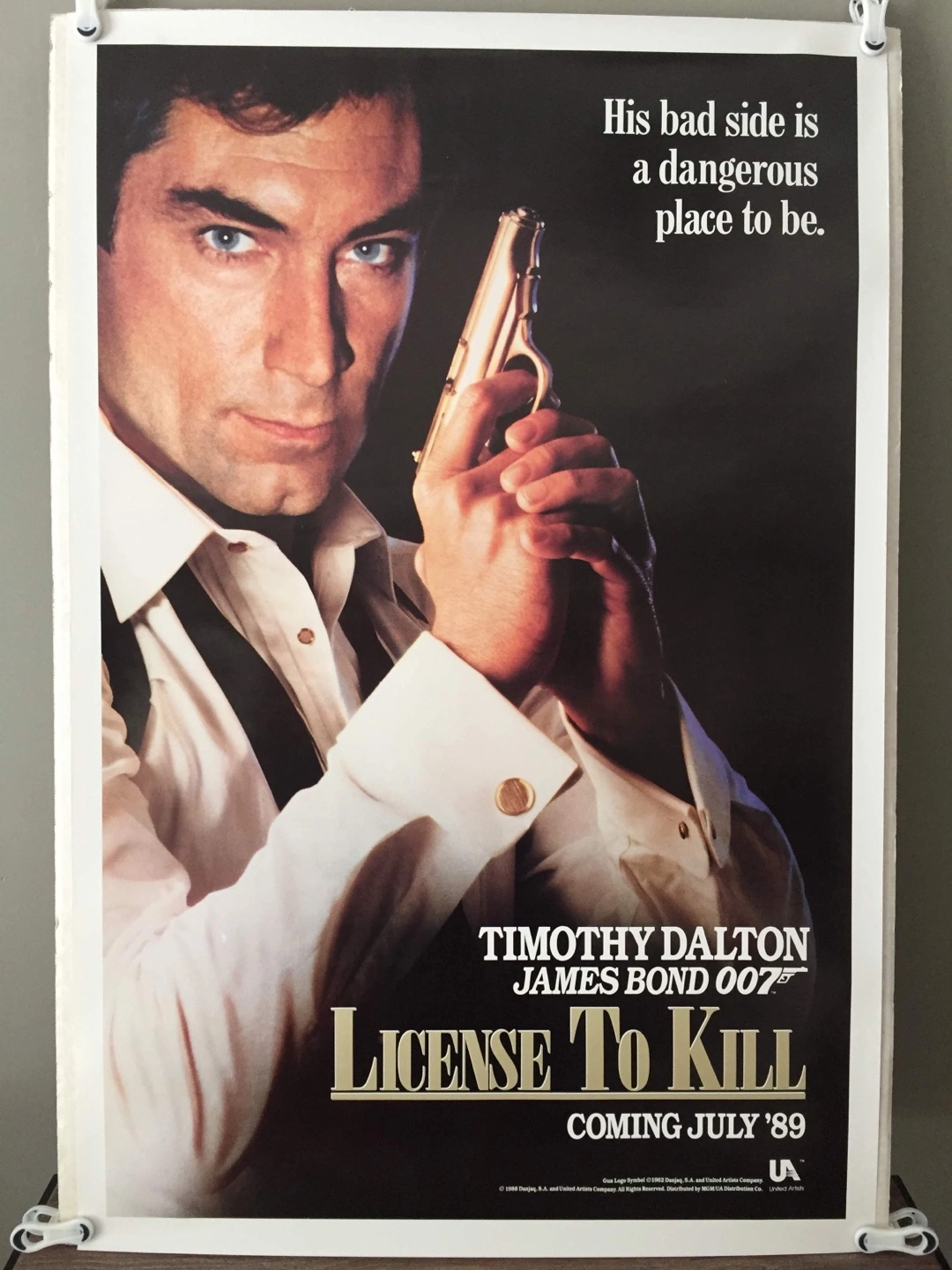 Original movie poster featuring Timothy Dalton as James Bond in License to Kill (1989) ~Advance~ Rolled, never displayed. Original Movie Poster 27x41 One Sheet Check out my other Original Movie Poster listings! New ones added daily. Also, visit my online photo gallery (Dropbox) to see other posters not yet listed! Copy and paste the following link into your browser for access! https://www.dropbox.com/sh/n1gw4sp7r64y4yq/AADMSan0sKzVPx0SCY6nUrmda?dl=0 Also, check out my Facebook Marketplace ads as well... Copy and paste the following link into your browser: https://www.facebook.com/marketplace/profile/535306076/?ref=share_attachment Niagara Falls.