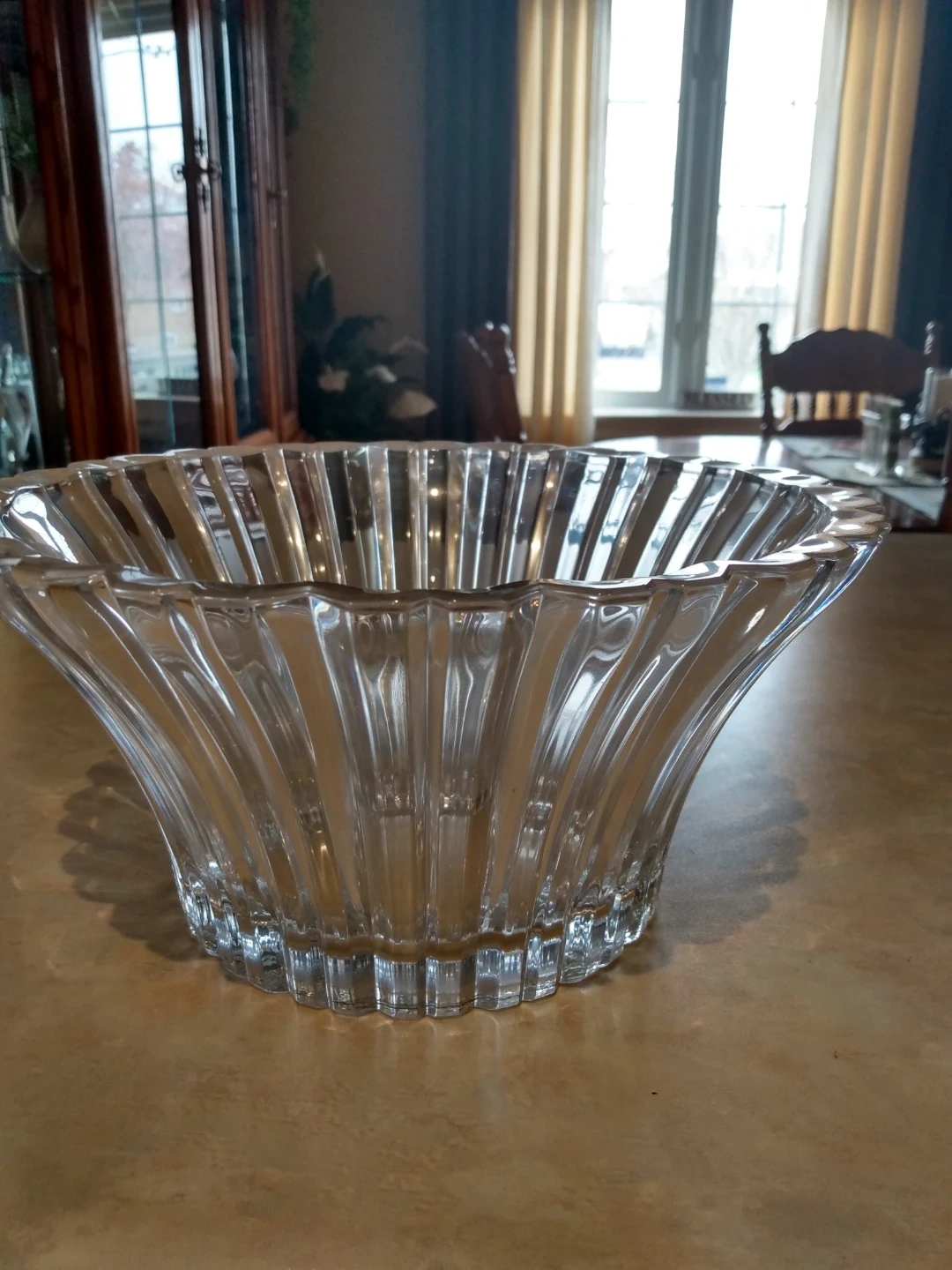 Elegant clear crystal glass bowl. Beautiful, decorative piece. Perfect for fruit, trifle or other decorative purposes. Unique design. (Cash pick up)