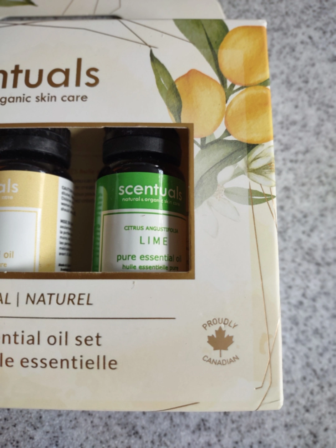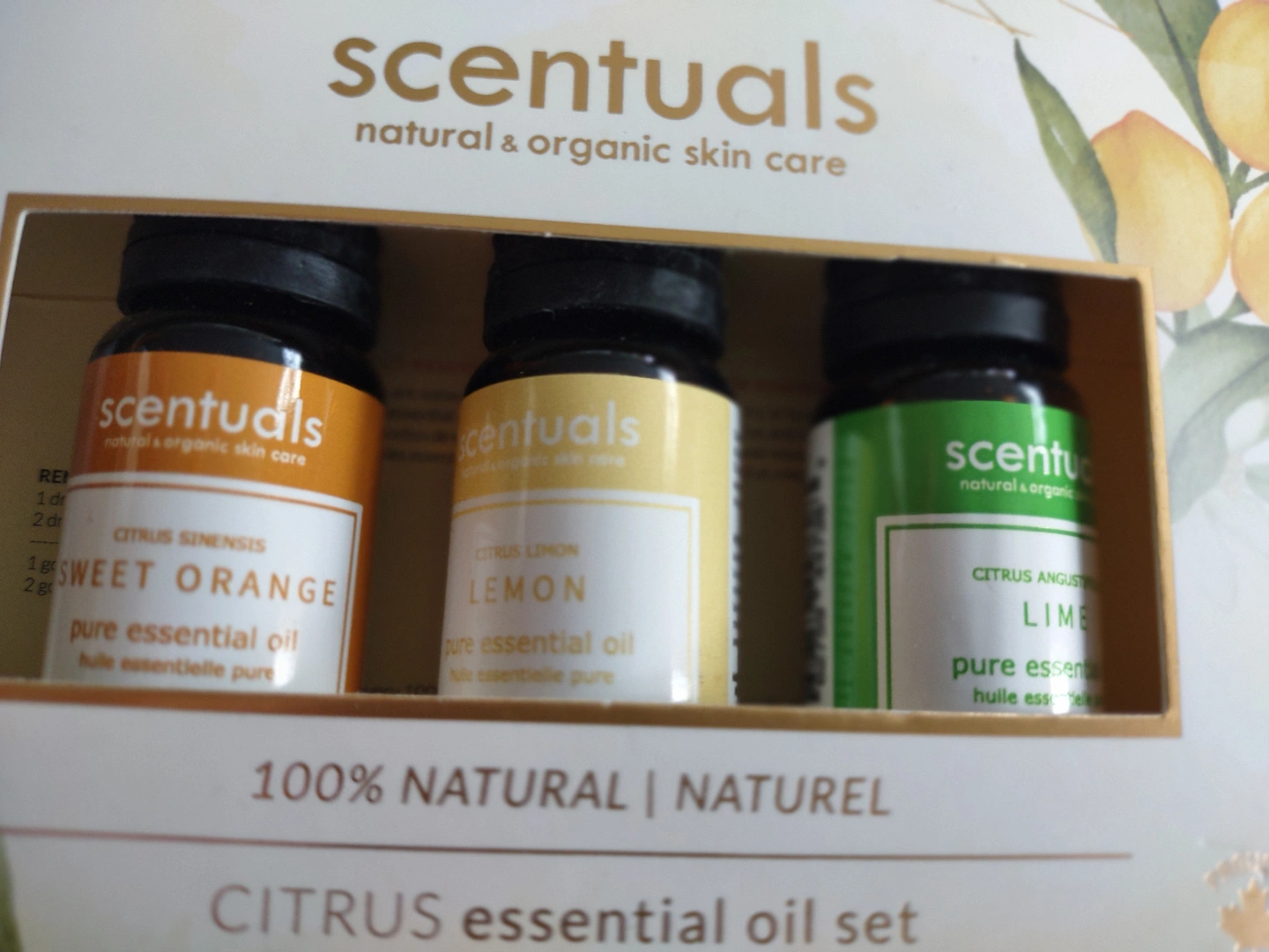 100% natural essential oil set. Includes lemon, sweet orange, and lime. Perfect addition to aromatherapy practice. Revitalizes senses with a trio of fresh citrus. 10ml of each oil. made in Canada. Retail $29.99+ tax https://scentuals.com/?aa_source=google&aa_medium=cpc&aa_creative=&aa_campaign=20222949329&aa_content=&aa_placement=&gad_source=1&gad_campaignid=21528245017&gclid=Cj0KCQjwgIXCBhDBARIsAELC9Zivbb9EN4r2xnJnK0U4nyhGy5bIMRE9cD0gHr82TFEP52utS9RTqDoaAi8aEALw_wcB