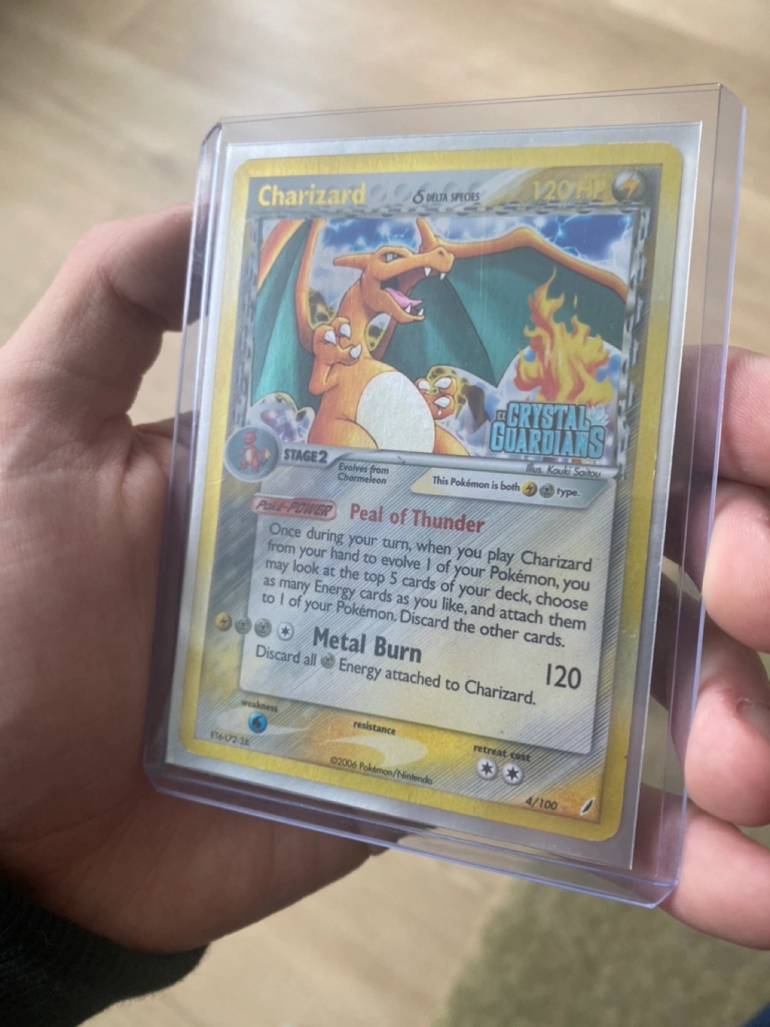 Charizard, Delta Species. Crystal Guardians set. Number 4/100. Lightly played condition. Ungraded.