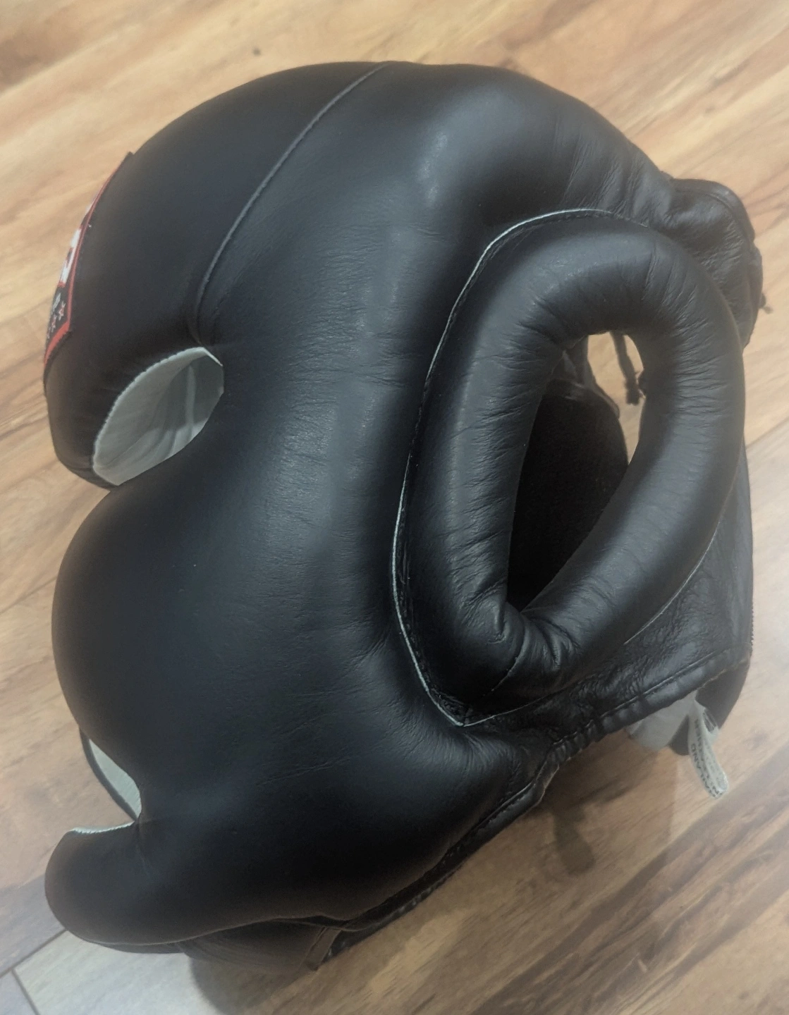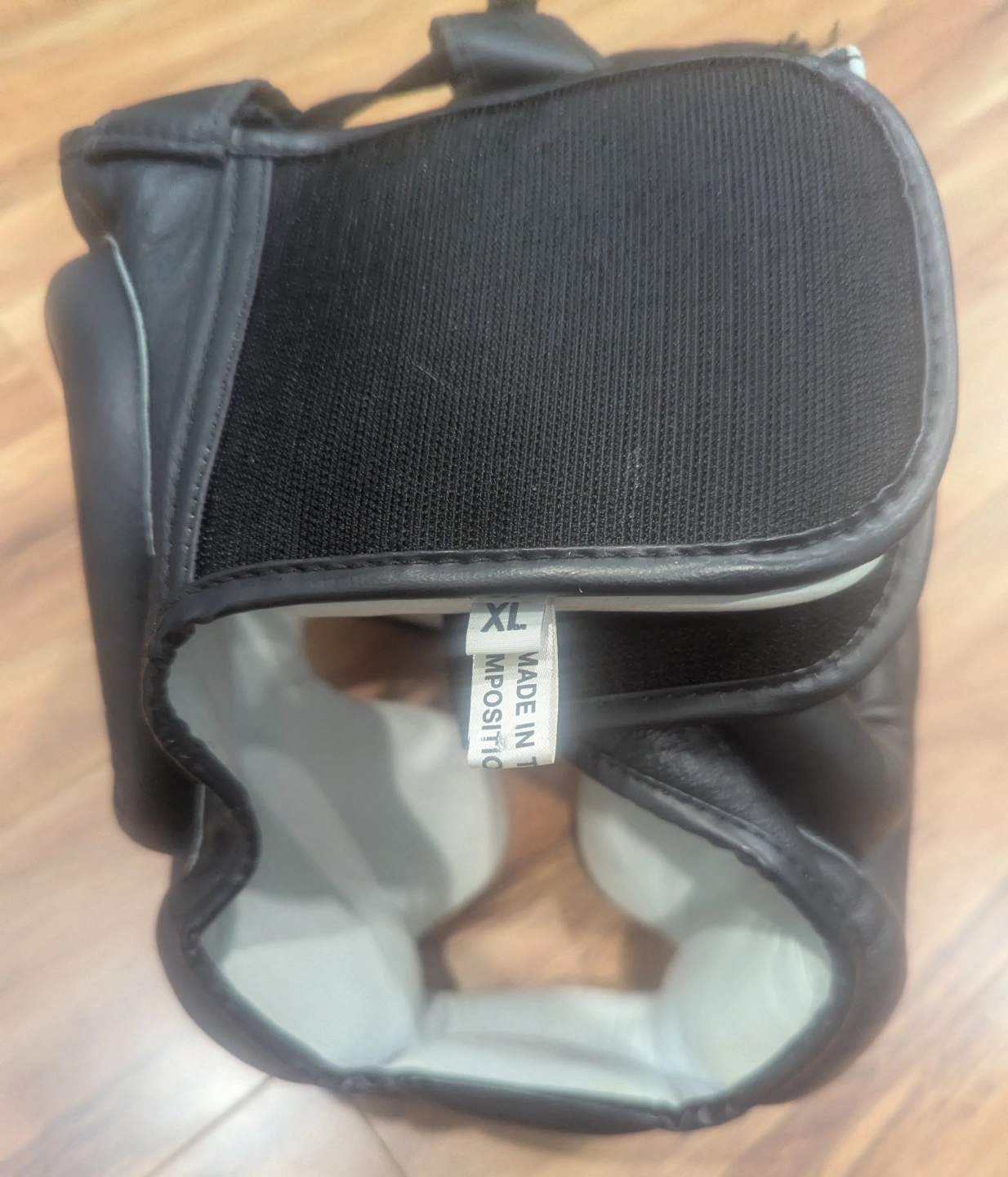 Black leather headgear. Size XL. Good for boxing or martial arts training. Made in Thailand.