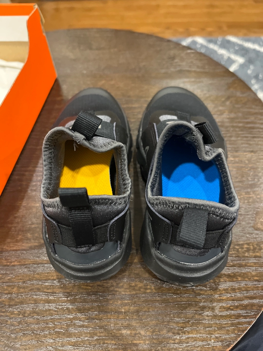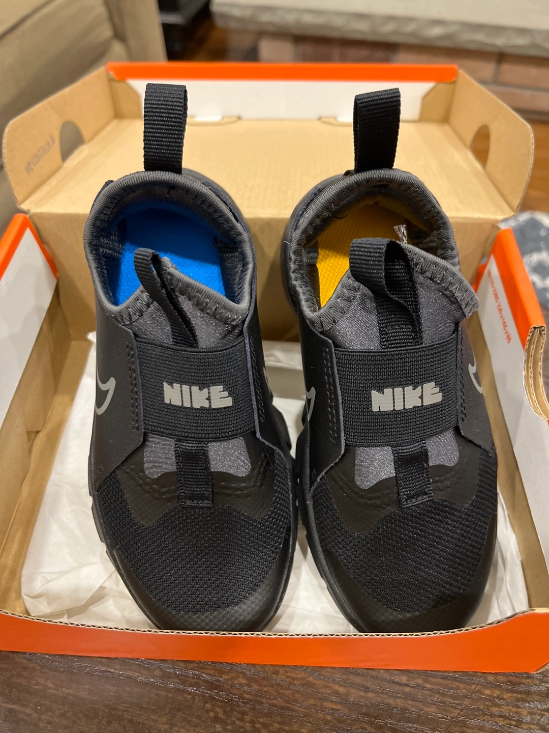 Nike Flex Runner 2 PSV toddler shoes. Size 11C. Black and grey colourway. Slip-on style. New in box. Brand New