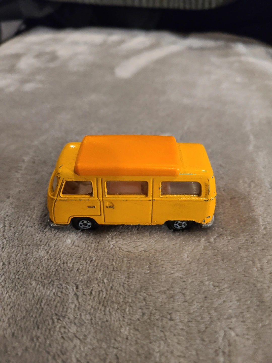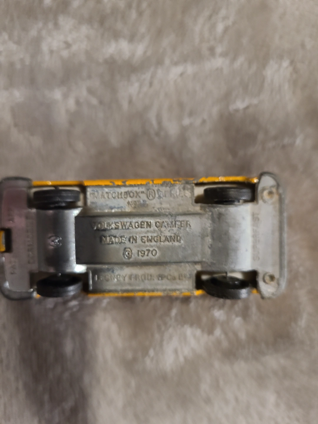 Yellow Volkswagen Camper van. Matchbox brand. Made in England. 1970.