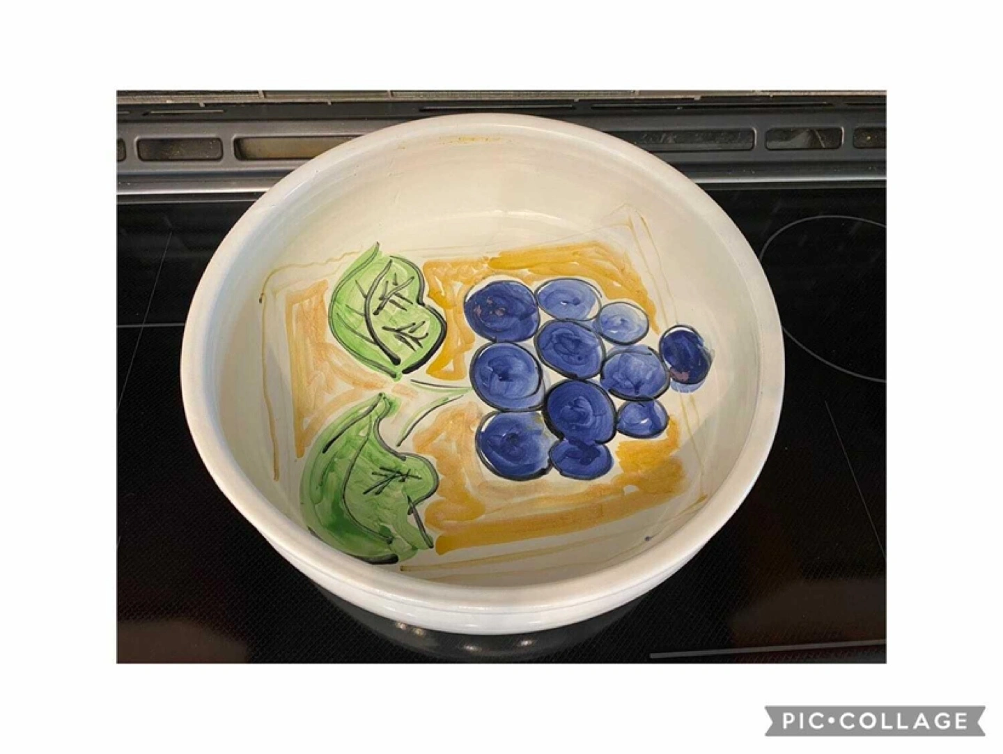 Handmade Ceramic Bowl for Sale Description: • Size: Large, measuring 11.5” x 3.5” • Condition: Brand new • Material: Handmade ceramic with an abstract grapes design • Versatility: Perfect for fruit, salad, pasta, or as a decorative piece • Features: • Unique abstract grapes pattern adds an artistic flair. • Smooth, glazed finish for easy cleaning and an elegant look. • A stunning statement piece for any home. Additional Information: • This bowl comes from a pet and smoke-free home in Park Ridge, ensuring it’s in pristine condition. • The item is cross-posted on multiple platforms, so act quickly if you’re interested. Ideal for adding a touch of elegance and sophistication to your kitchen or dining area. This versatile bowl is not only functional but also a beautiful decorative item that can enhance any table setting or home decor. Don’t miss out on this one-of-a-kind piece!