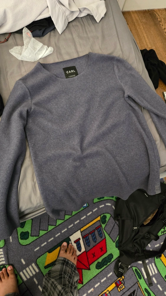 Grey long-sleeved jumper. Soft material. Excellent condition. Wide Collar. Size L.