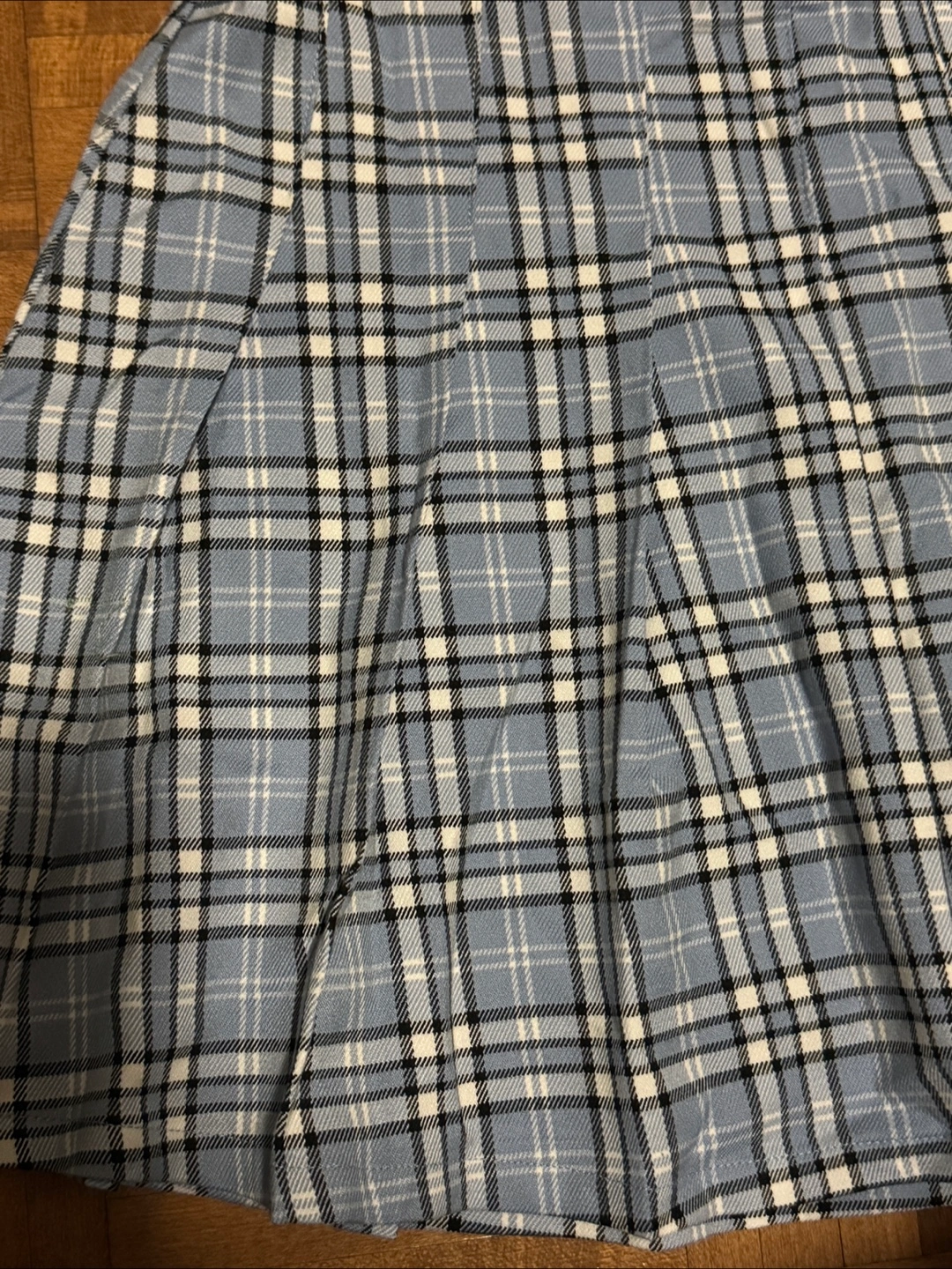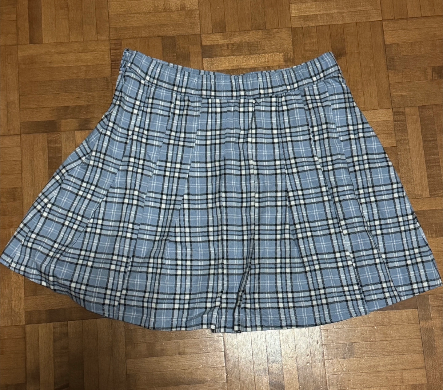 Blue, black and white plaid pleated mini skirt. Ultra high-rise waist. Size medium. Pickup Carlton and church