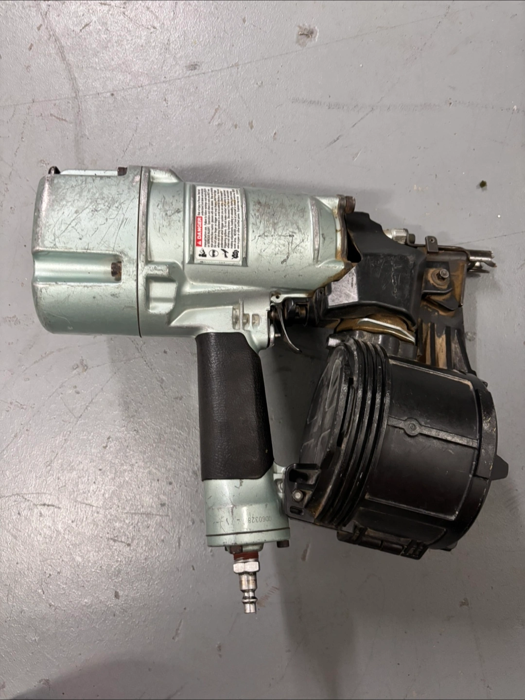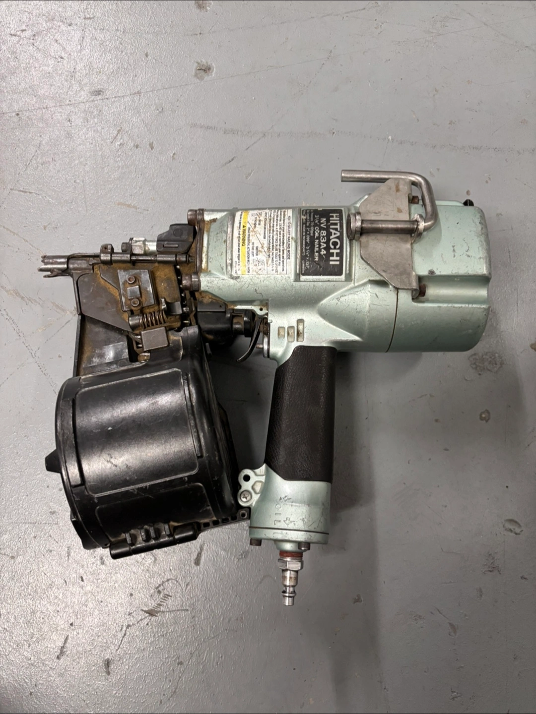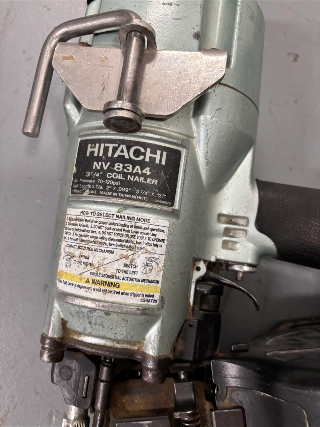 Hitachi NV83A4 31/4 coil nailer. Shows wear from use. Includes nail magazine. Air pressure 70-120psi.