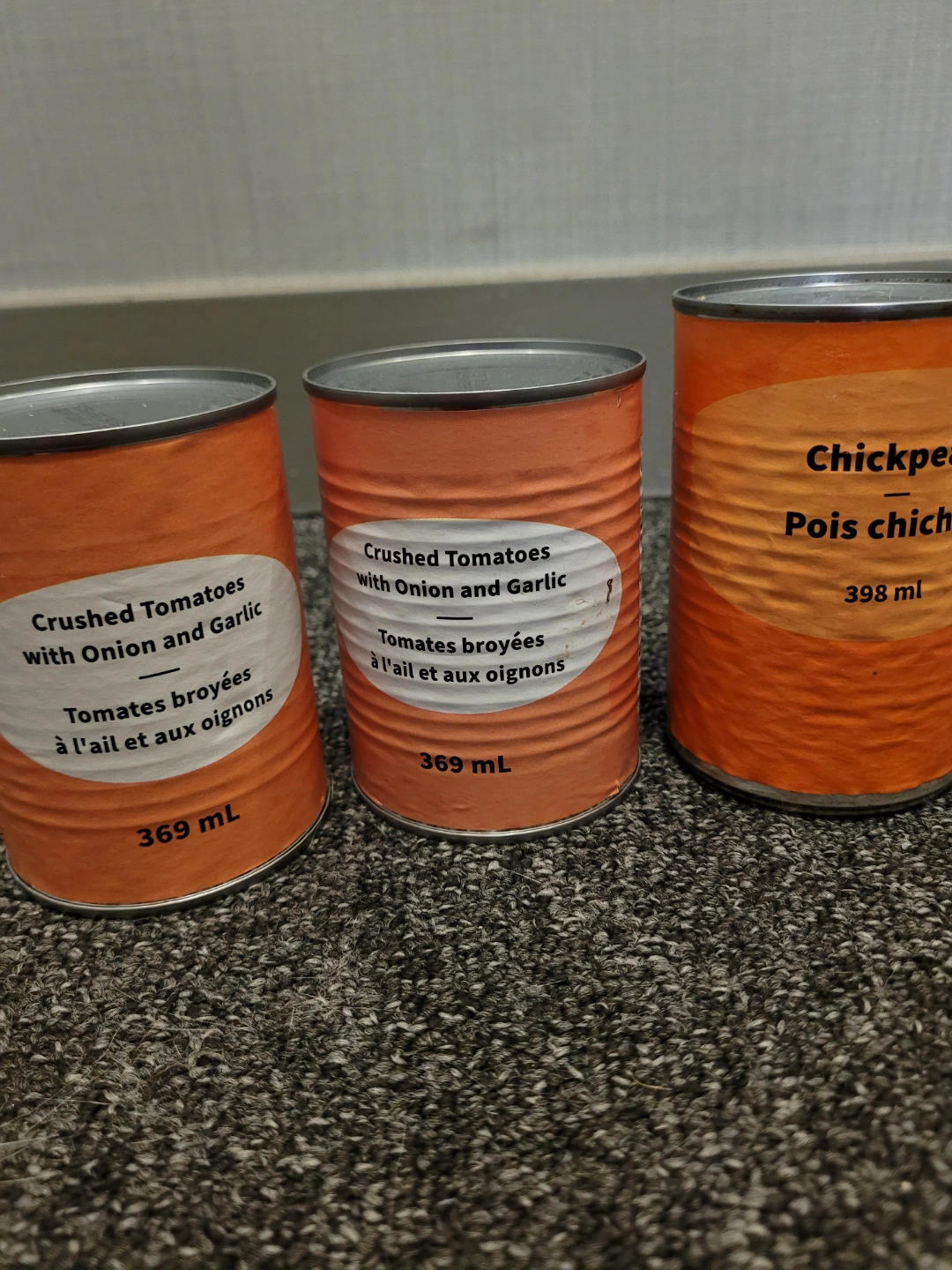 Three cans of food. Two cans of crushed tomatoes with onion and garlic, one can of chickpeas. All unopened. 369 mL and 398 mL sizes. **** Pickup Only **** **** First Come/ First Serve **** **** No Holds or Reserves unless purchasing additional item ****