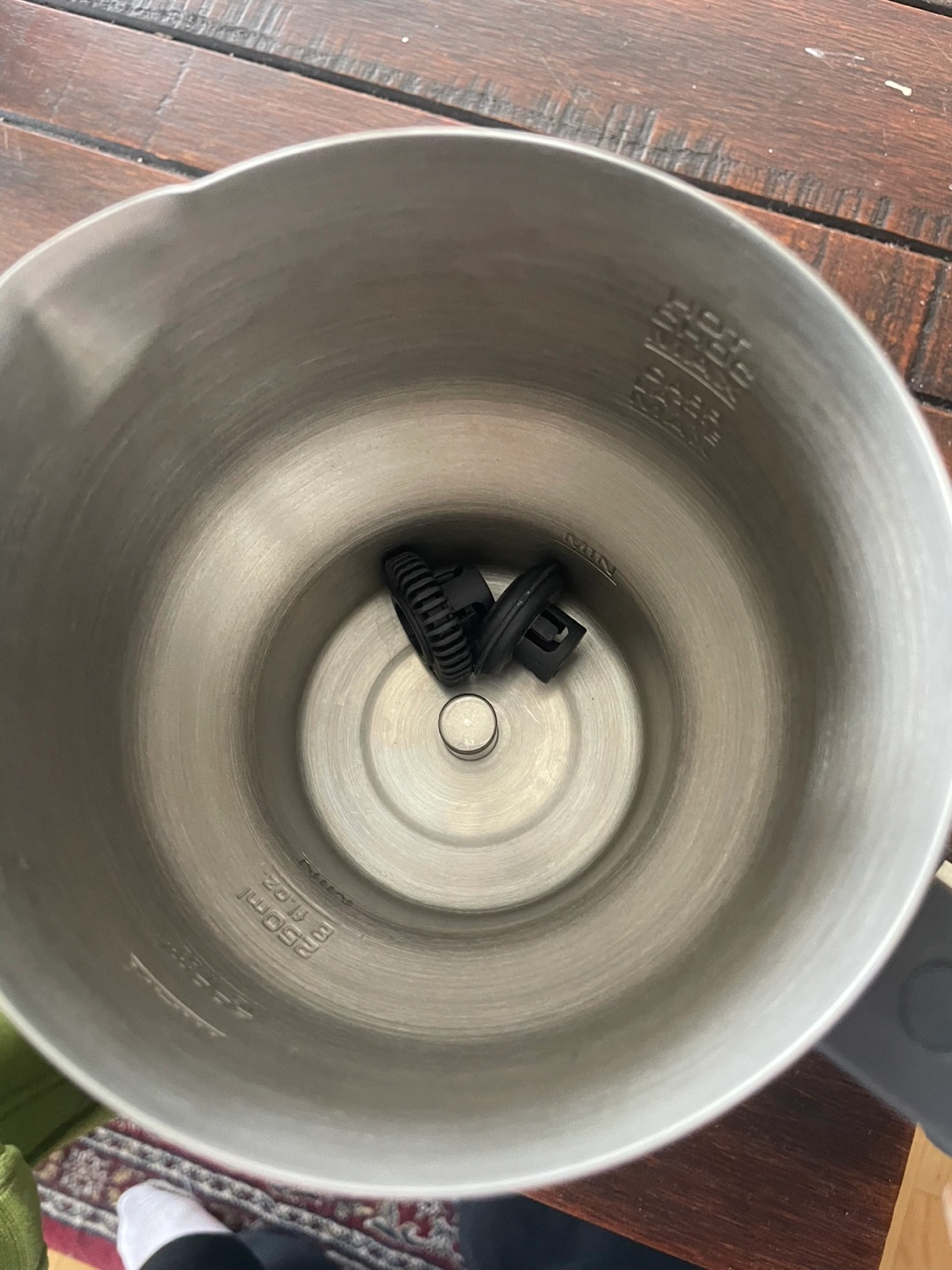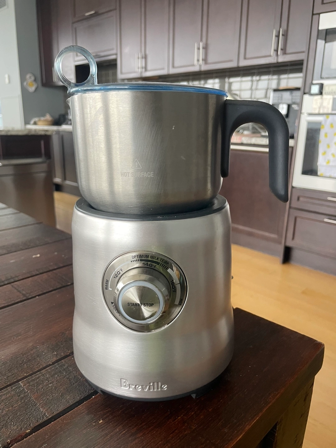 Stainless steel milk frother. Includes 2 frother types, for more or less foam (cappuccinos latte). Excellent condition. Barely used.