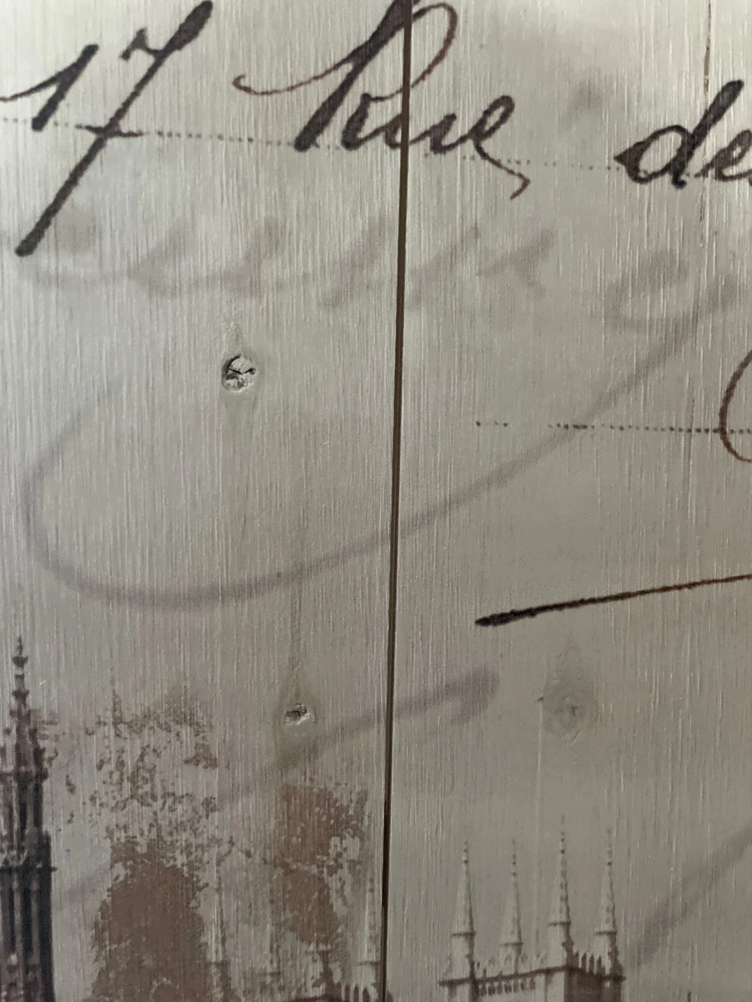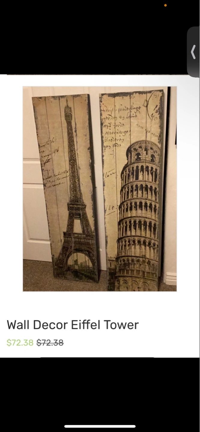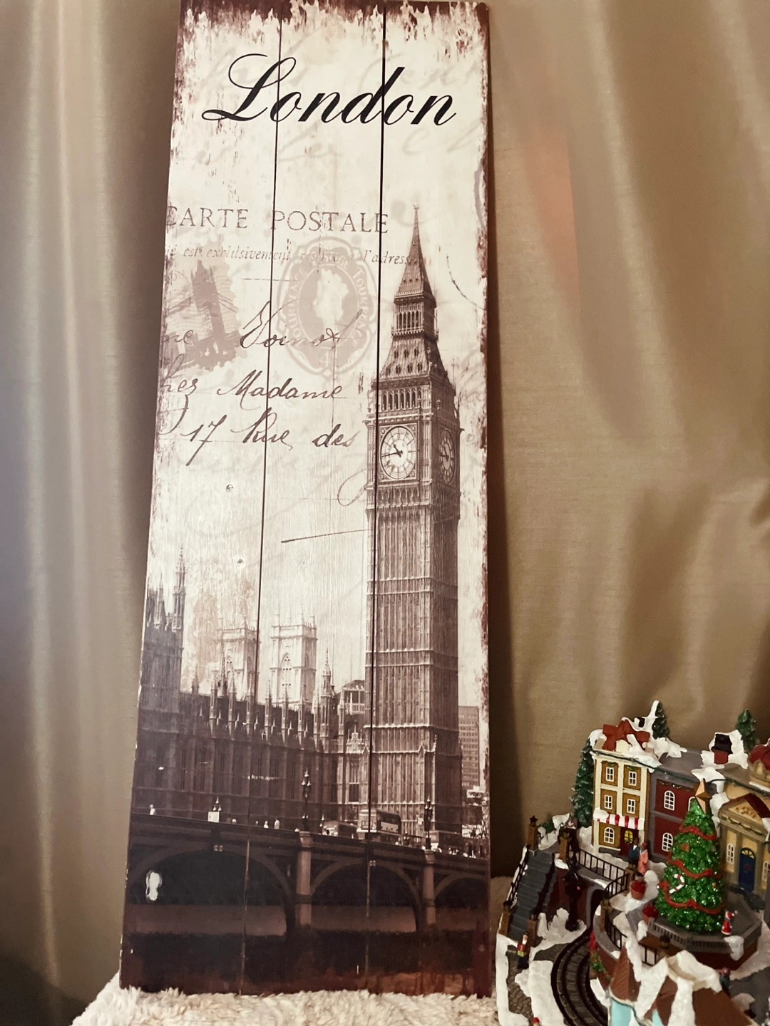 Set of two long, rectangular wall art panels. Features images of the Leaning Tower of Pisa and Big Ben. Vintage-style design. Wooden frame. Ready to hang or stand Pu Whitehorn