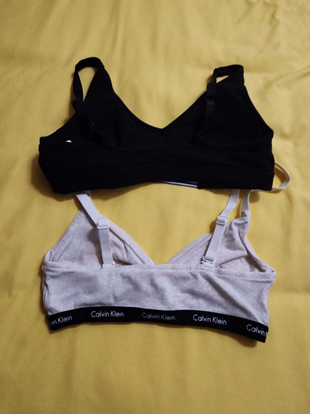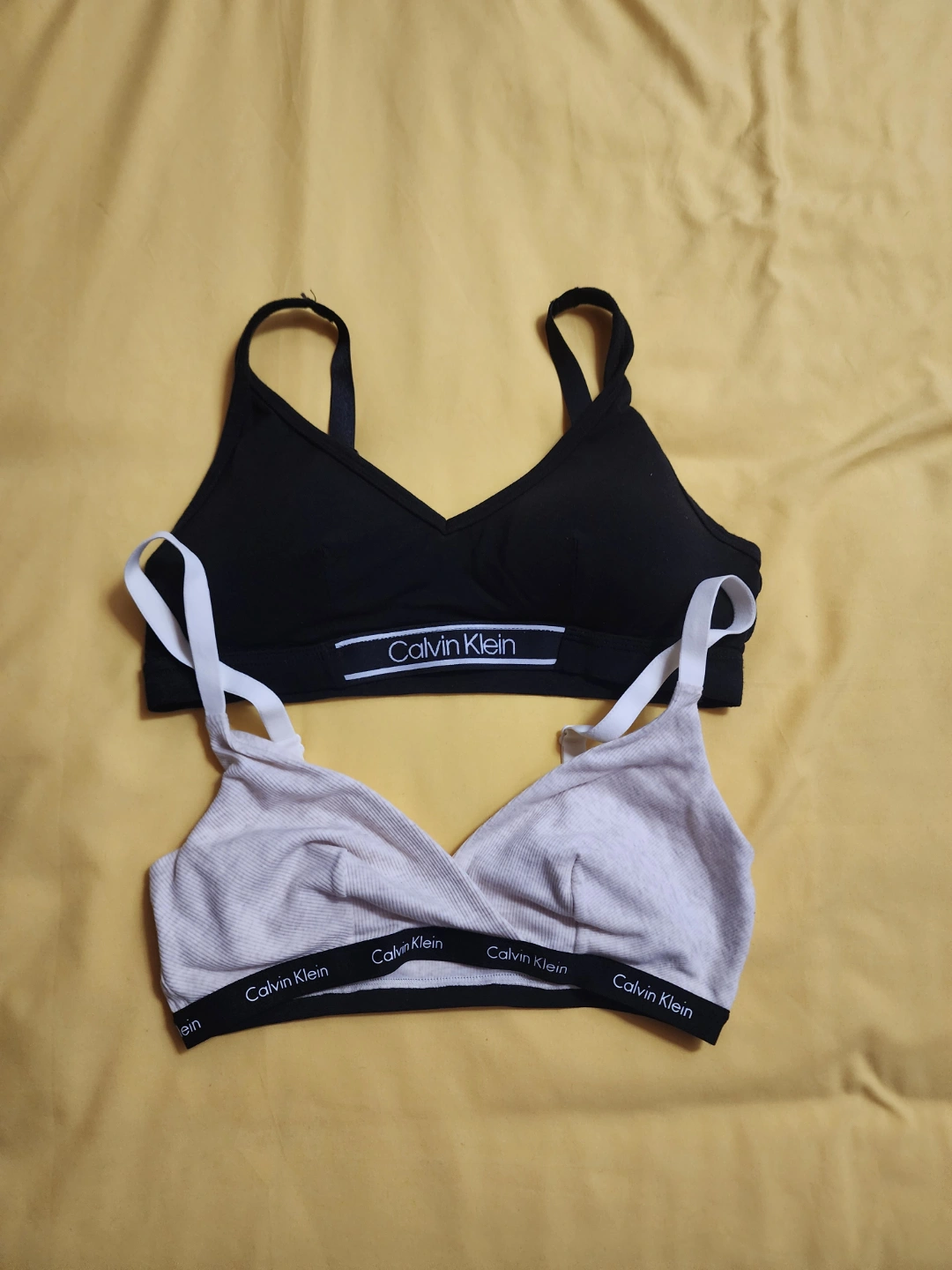 Two Calvin Klein bras, one black and one light beige. Both are size medium. Simple, comfortable design. Excellent for everyday wear. I've never worn them, only tried them on. They are too small for me unfortunately! Asking $15 for both or $10 each. Pick up in Shaganappi sw.