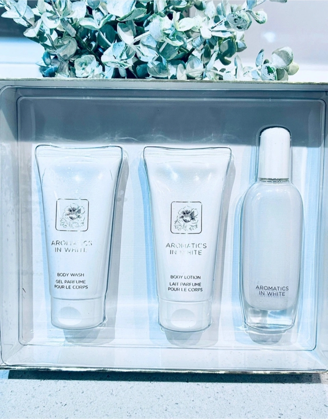 NEW IN BOX! REG $148 Clinique Perfume Set! Plus I will add a FREE Gift with purchase! Brand new Clinique Aromatics in White Essentials Gift Set! I HAVE MORE BRAND NEW PERFUME AND SETS! Check out my other listings, bundle and save! Here for a limited time in Perfume Spray, Body Wash and Lotion. 💫 Retails for $148 BEFORE tax. SET INCLUDES: - Aromatics in White Perfume Spray, 1.7 fl. oz. - Aromatics in White Body Wash, 2.6 fl. oz. - Aromatics in White Body Lotion, 2.6 fl. oz. PLEASE READ‼️ 🛍️- #FREE Gift🎁 with EVERY purchase! 🎉 BUNDLE with other items I have & SAVE BIG! ⚠️ Pick up is in NEW WESTMINSTER only! ⚠️ IF LISTING IS UP ITS STILL AVAILABLE. ⚠️ Price is FIRM unless price says “make an offer” ⚠️ Exact cash only. No returns.