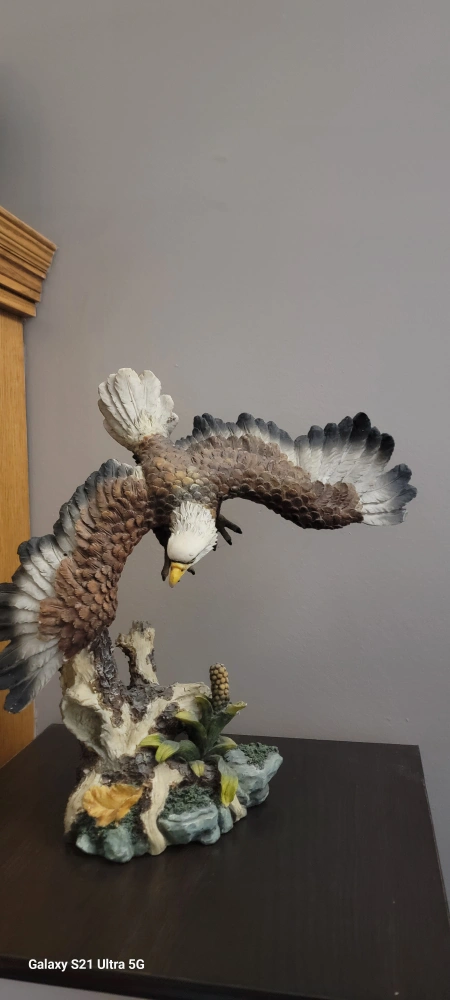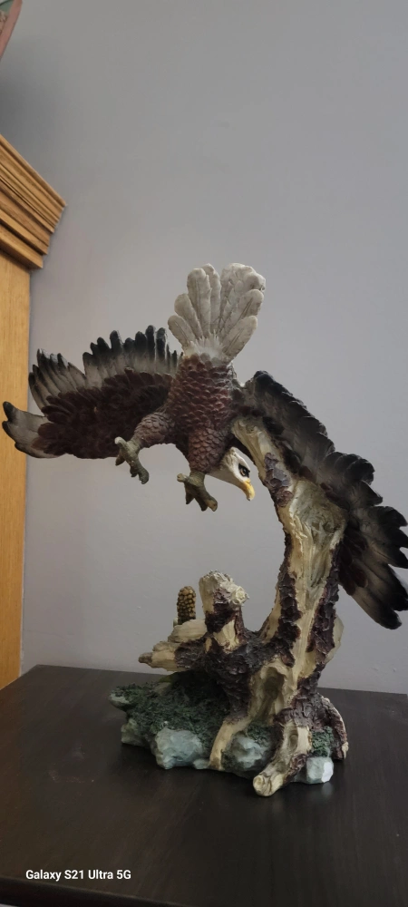 Beautiful eagle statue. Detailed sculpt. Perched on a branch. Great addition to any home. Plus Free Gift of value of $350.