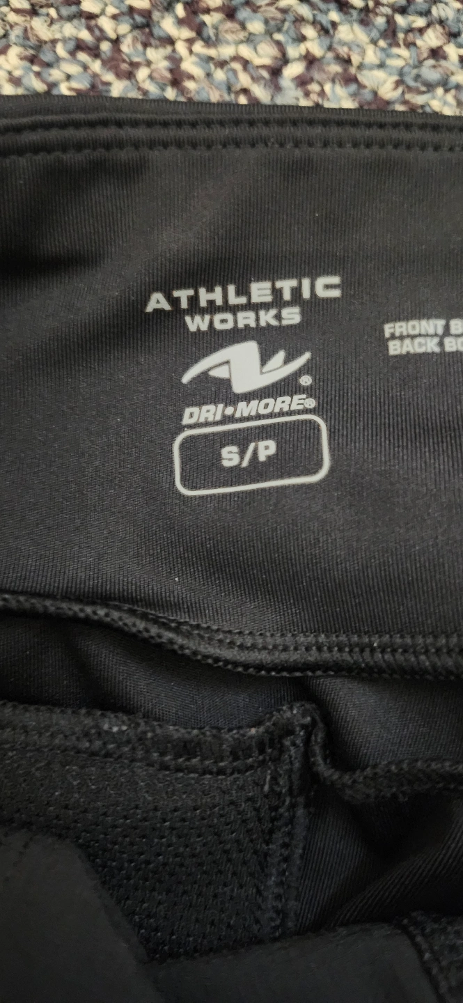 Black capri leggings. Small/Petite size. Features pockets. Athletic Works brand. Dri-More technology.