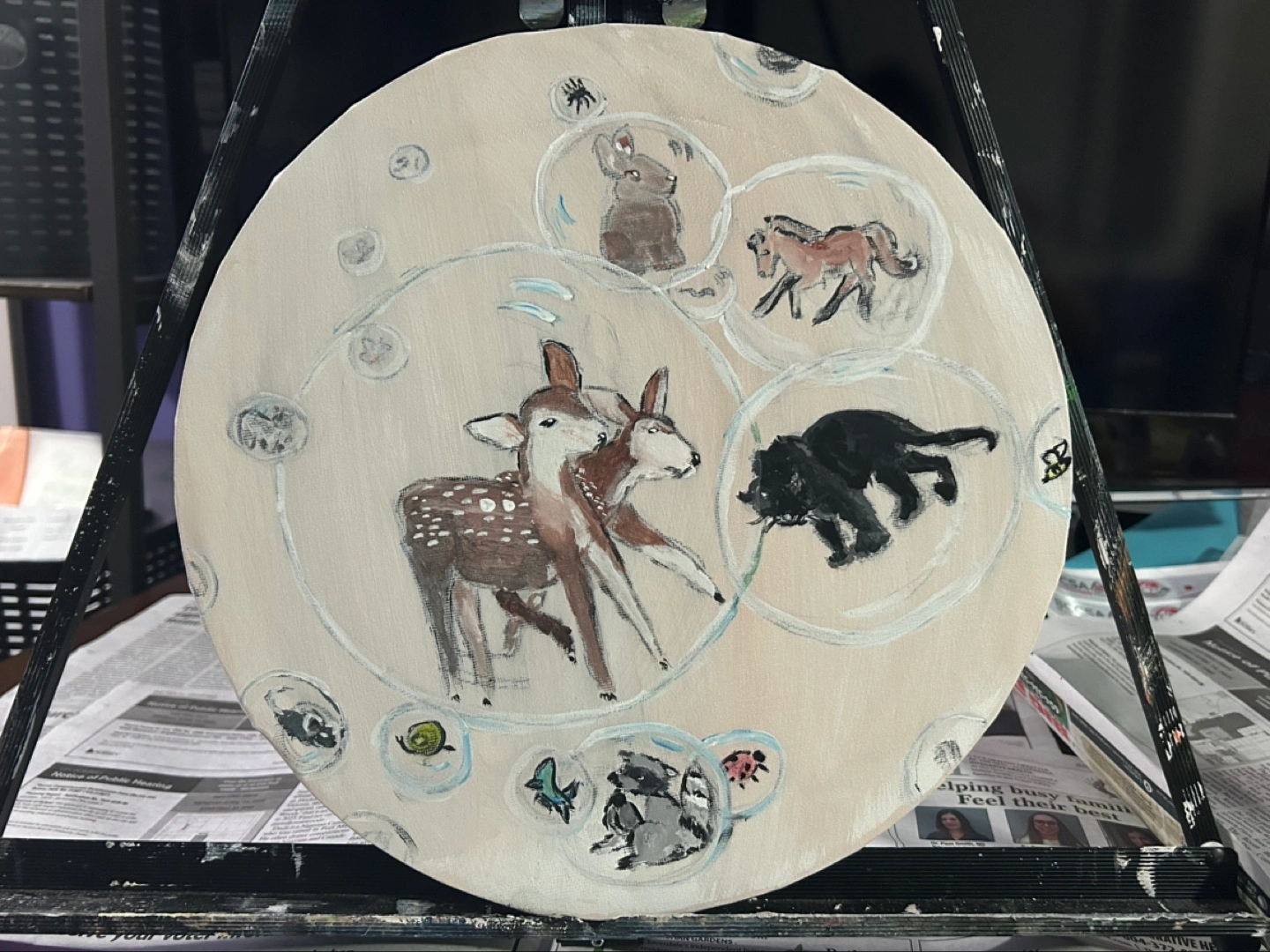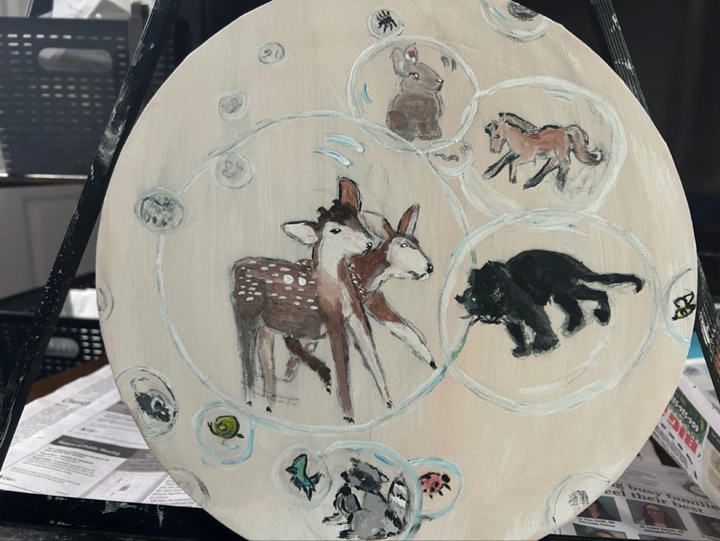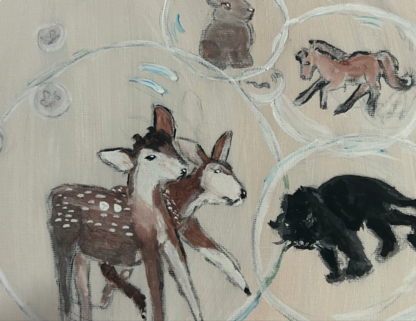 12 inch acrylic painting of animals in bubbles. Deer, cat, raccoon etc. cash or e-transfer only. Sorry no refunds. Payment to be made at pick up. if item needs to be shipped then customer pays for shipping.