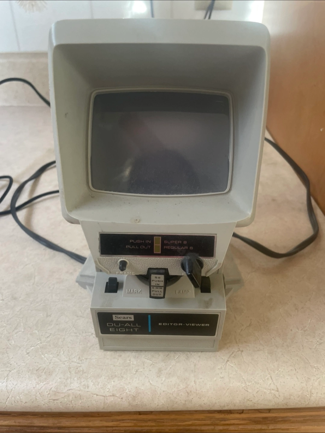 Vintage film editor viewer. Features a small screen. Accepts Super 8 and Regular 8 film. Includes various controls for frame, mark, and lamp Pick up in central Etobicoke