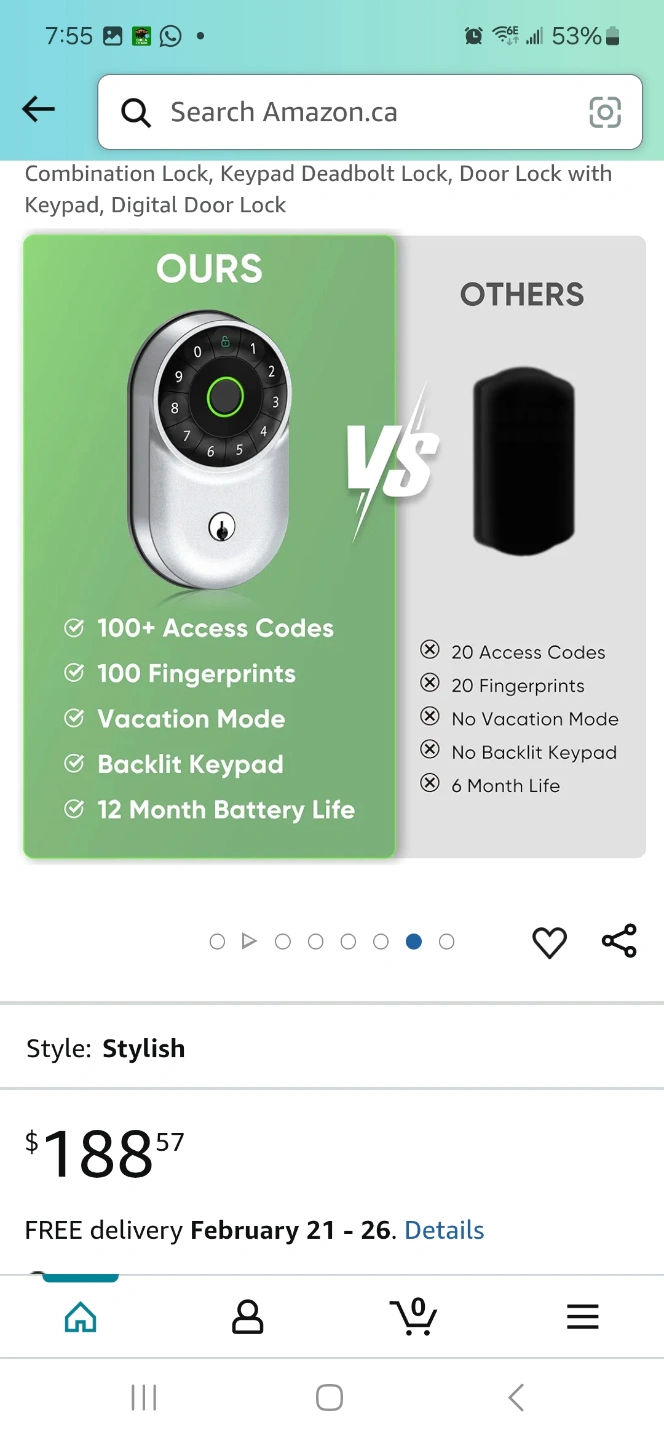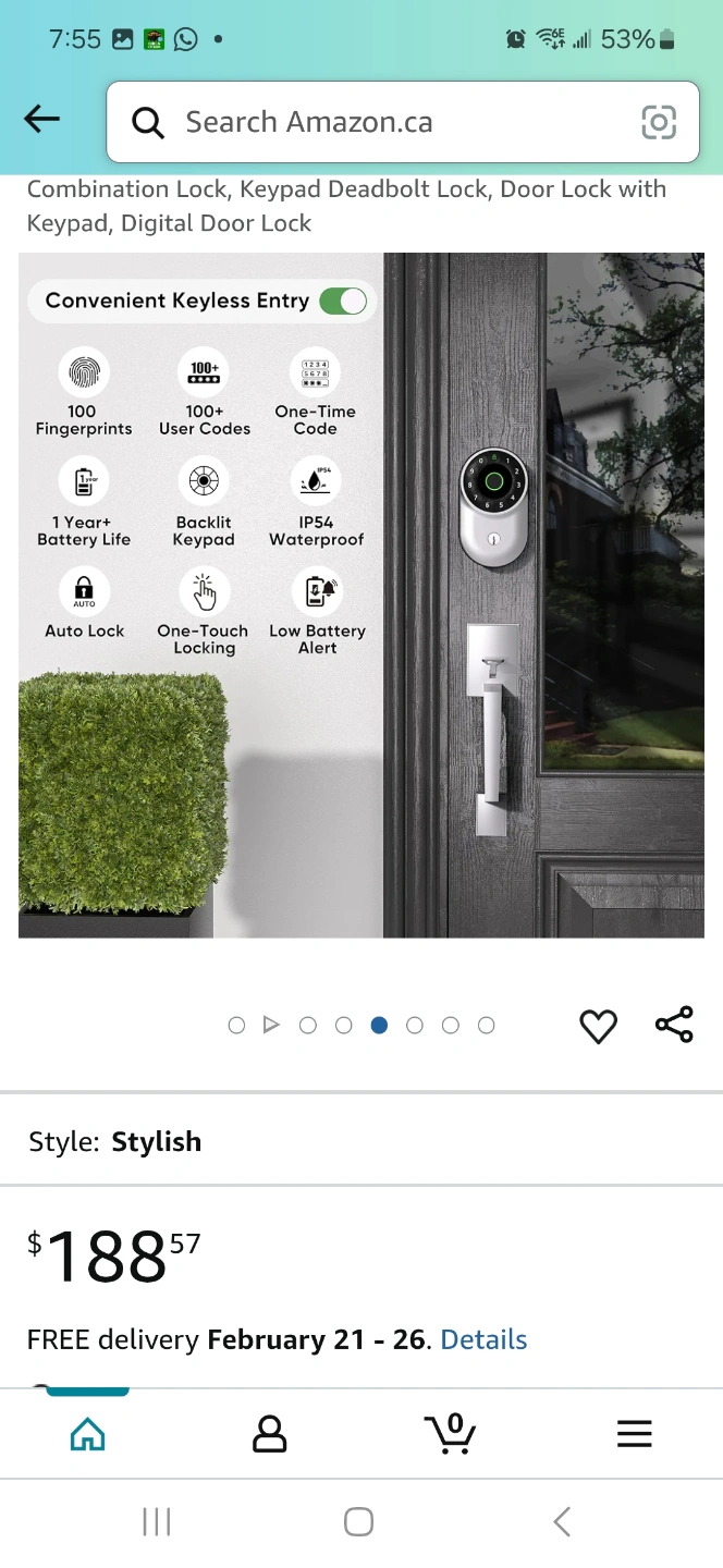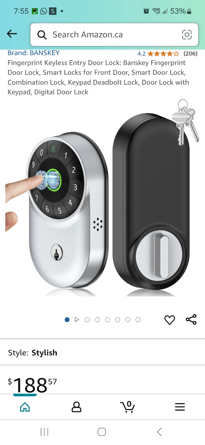 Keyless entry door lock. Features fingerprint, keypad, and key access. Smart lock with deadbolt. Stylish design. Long battery life.
