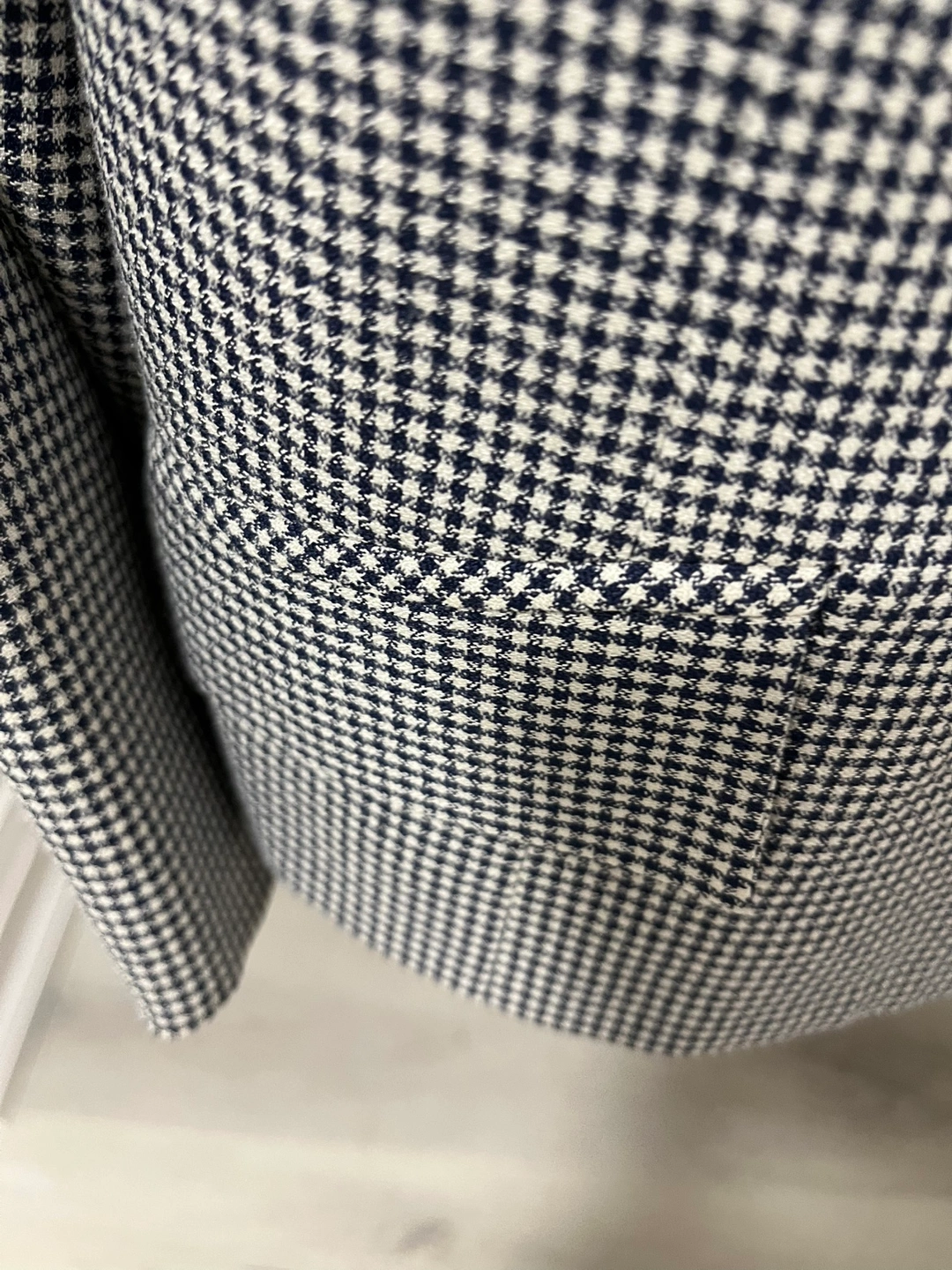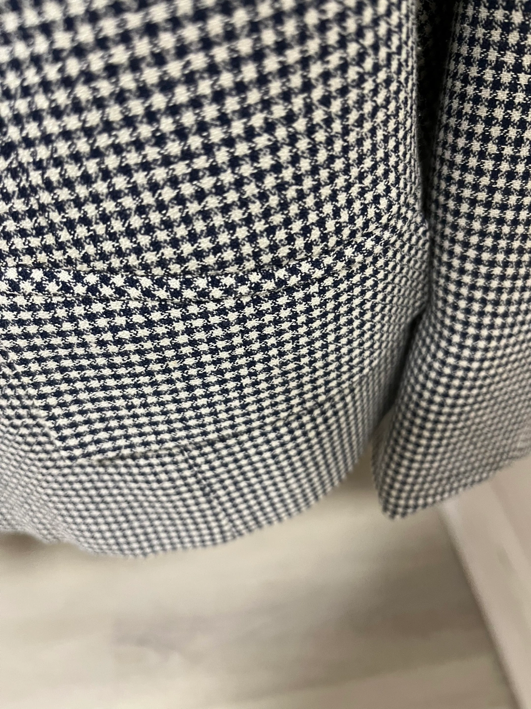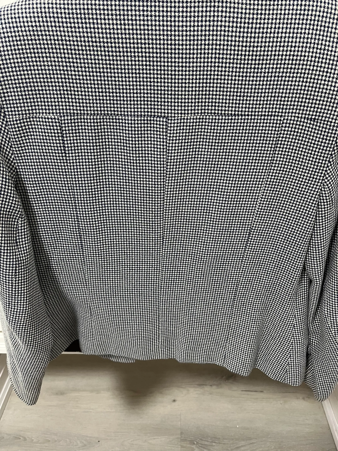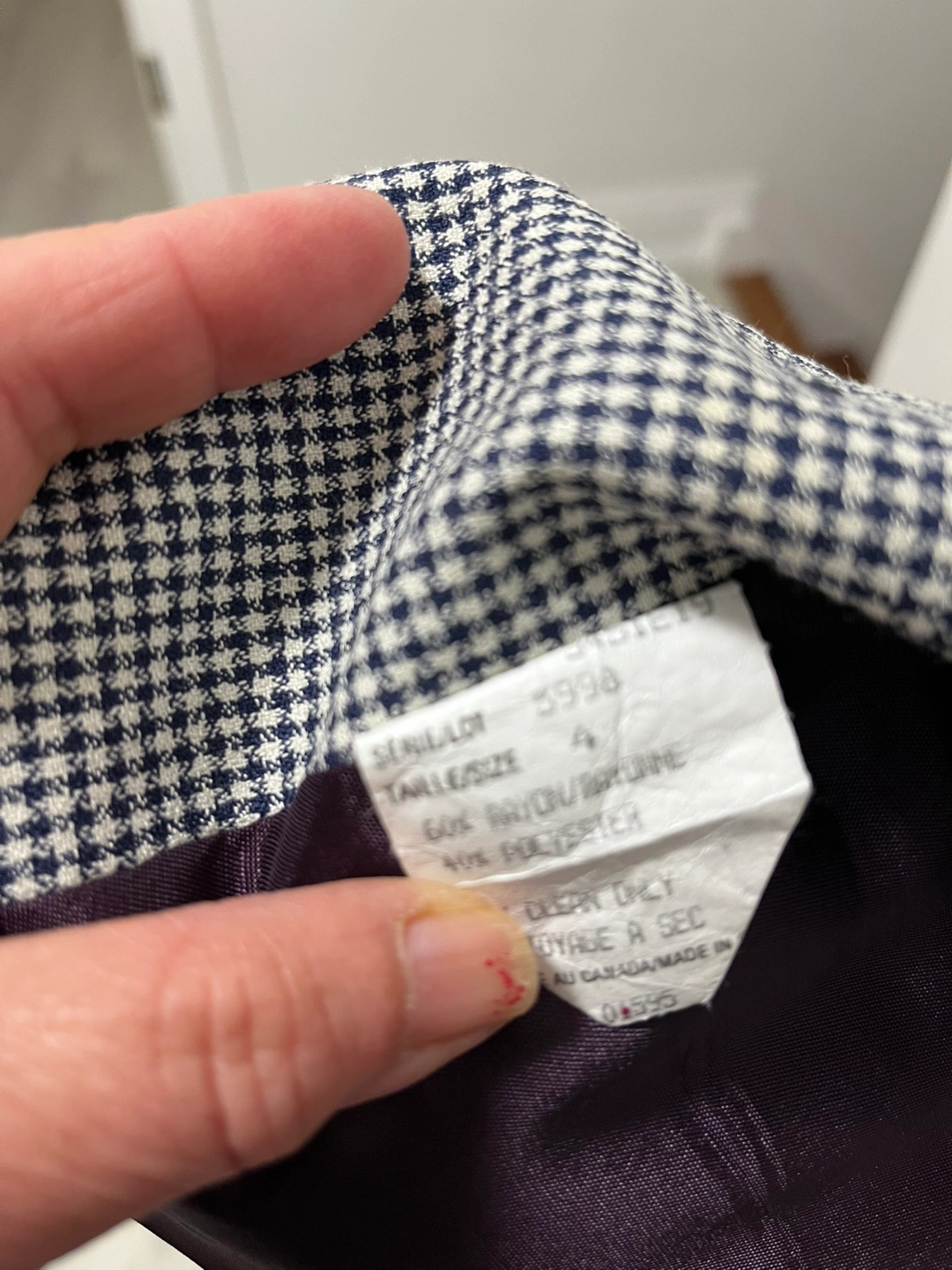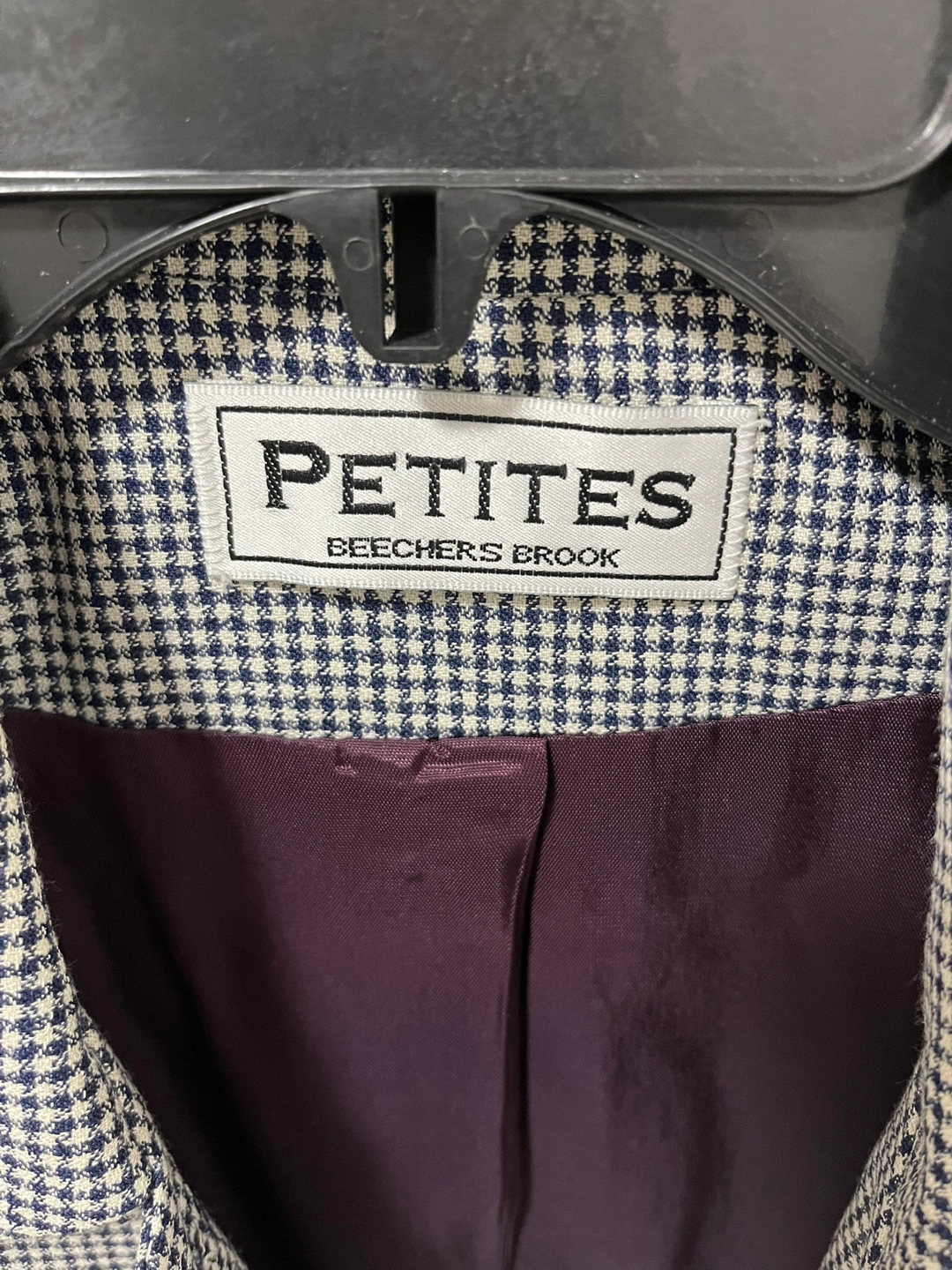 Women's petite blazer. Navy and white gingham pattern. Purple lining. Size 4. I have more blazers, jackets for office. Retired and moving . Different sizes 6, 8
