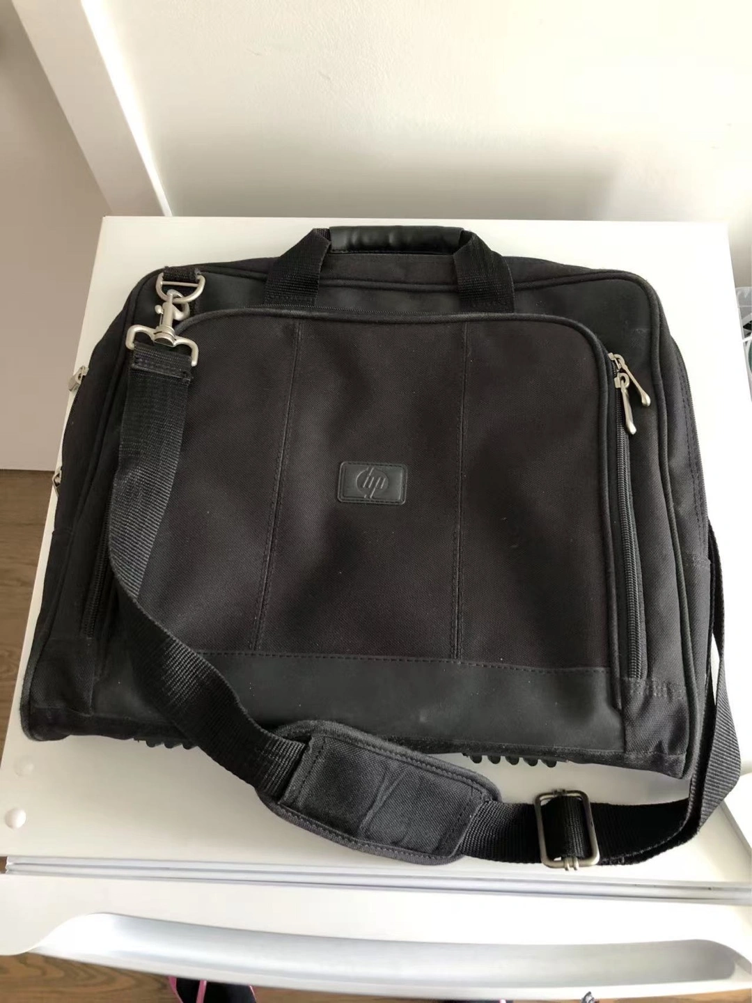 Black laptop bag. Adjustable shoulder strap. Zipper closure. Good condition.