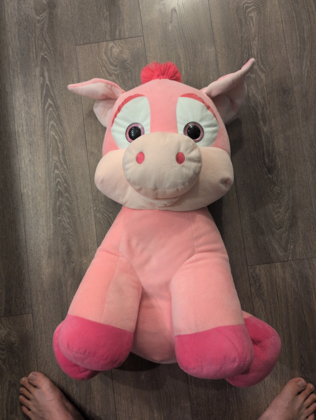 Huge pink pig plush toy. Soft and cuddly. Great for kids or collectors. not too much wear and tear