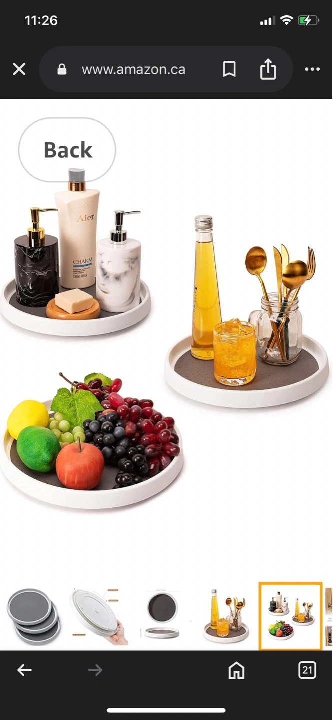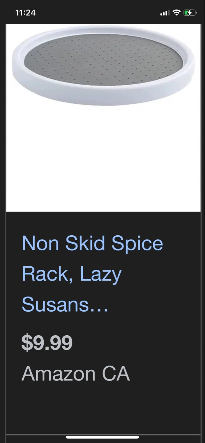 Rotating spice rack, perfect for pantry, refrigerator, or countertop. Non-slip foam pad. Grey and white. Great for organizing spices, condiments, or other small items.
