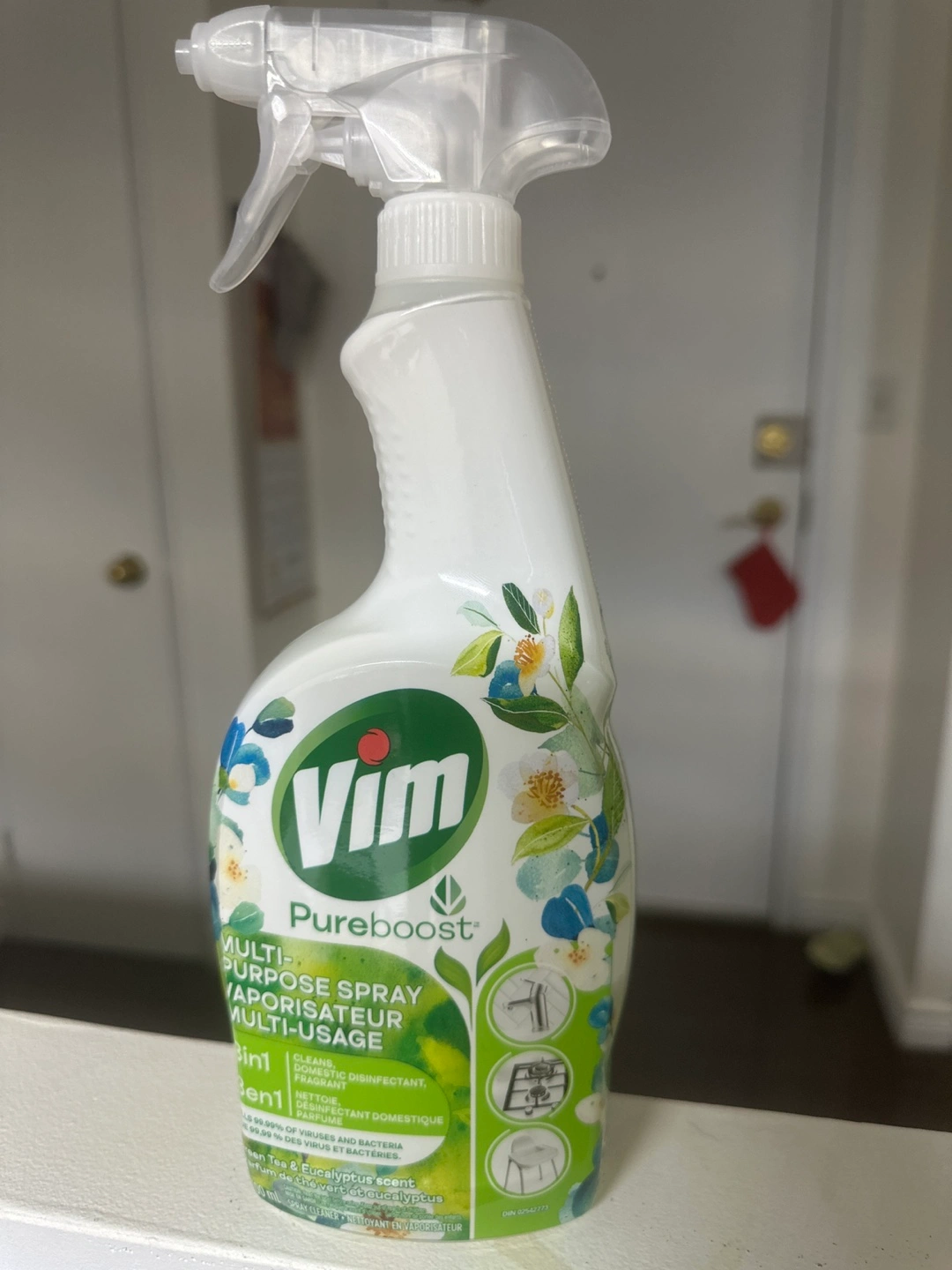 Multi-purpose spray bottle. Clean scent. Kills 99.9% of viruses and bacteria. Great for disinfecting.