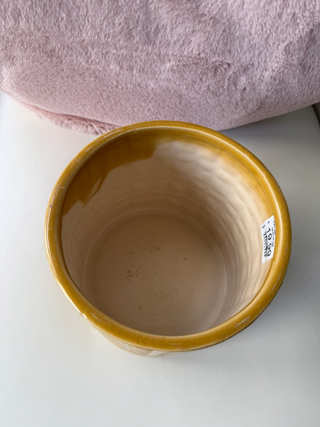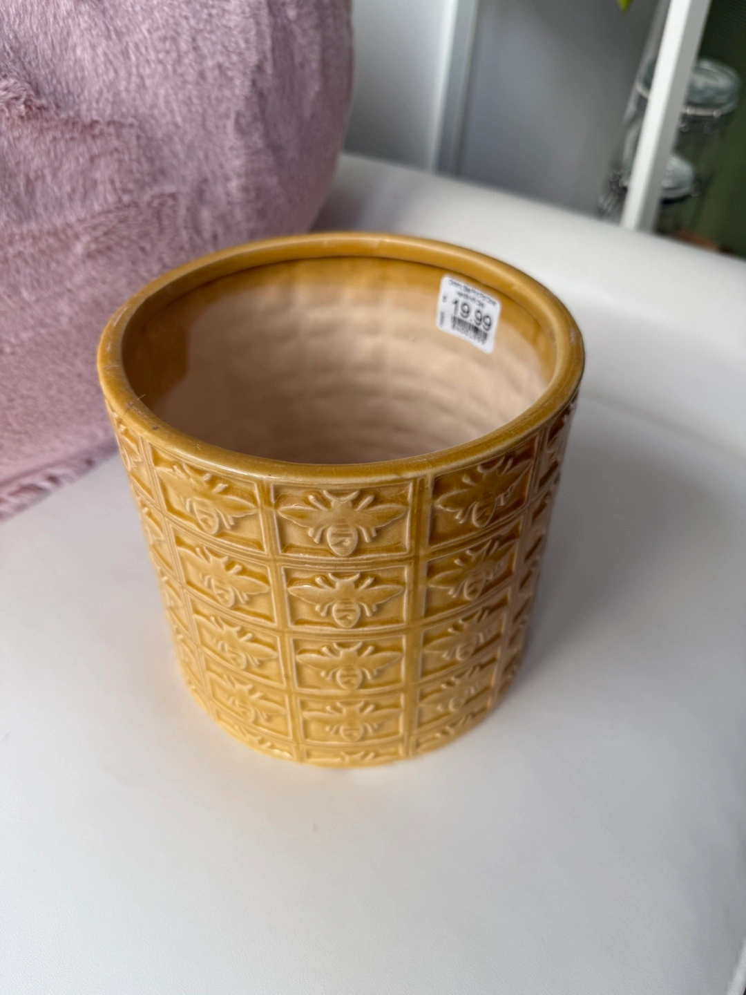 Small ceramic planter. Mustard yellow colour. Bee pattern. Great for small/medium plants.