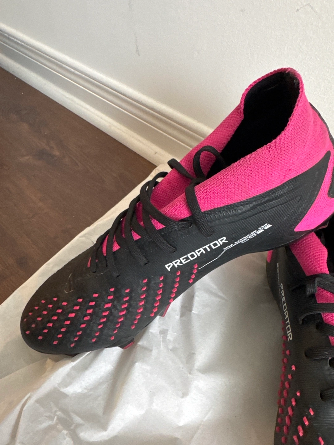 Black and pink Adidas Predator .2 firm ground soccers cleats. Good condition. Size US 9