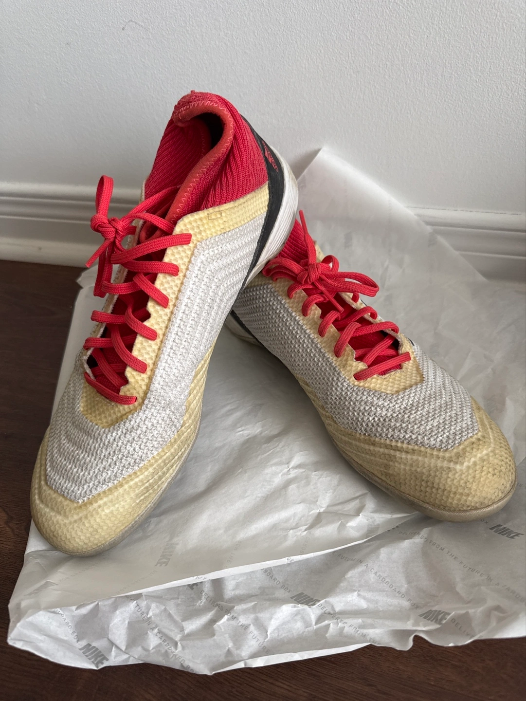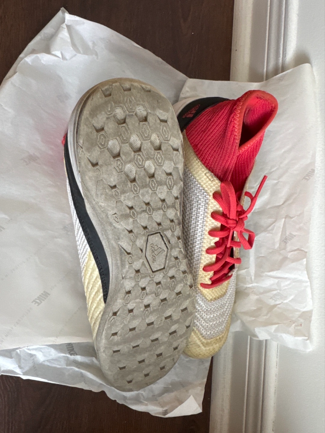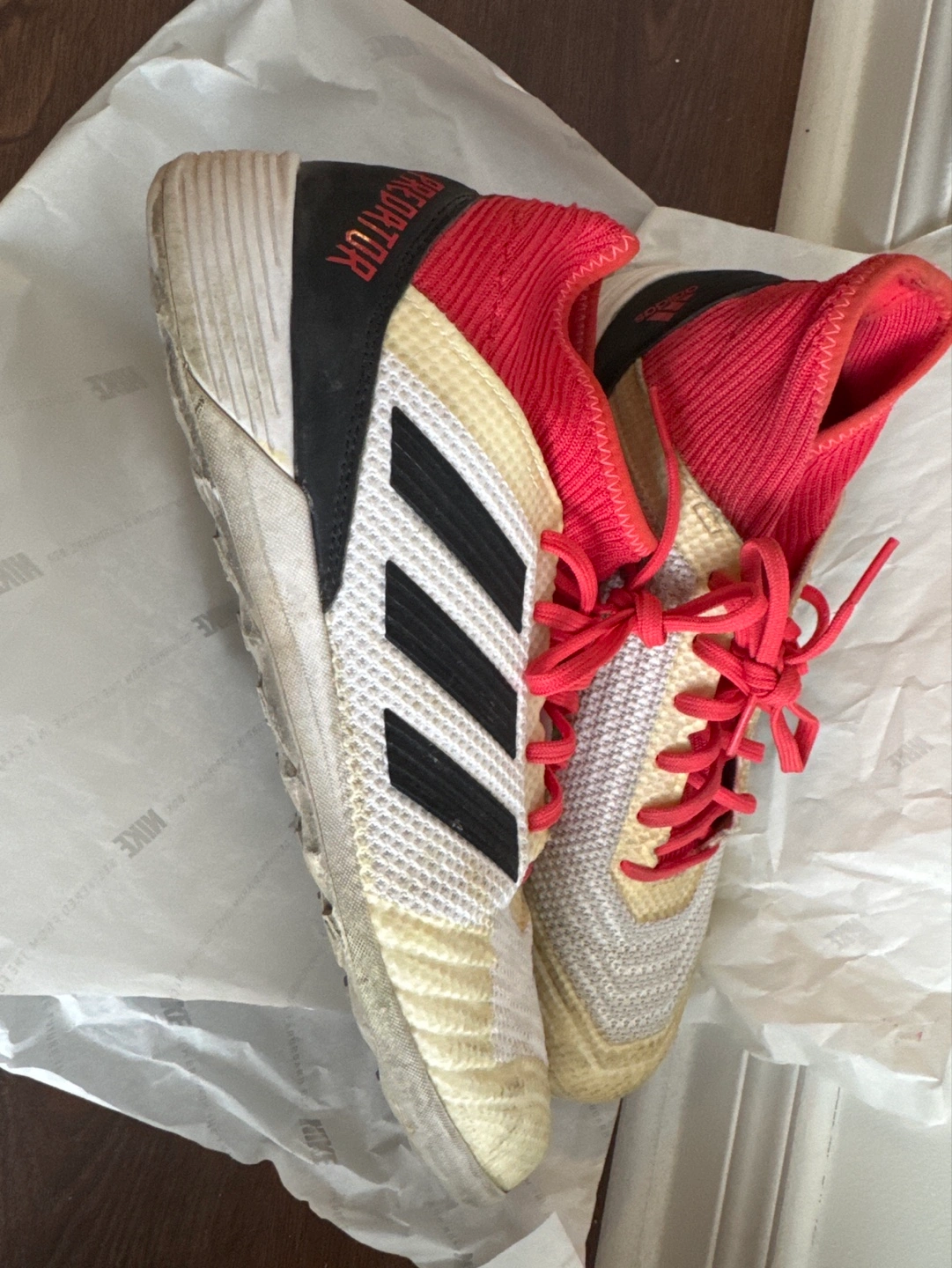 Adidas Predator indoor soccer shoes. White, red and black colour scheme. Good for indoor use. Used. US 9.5