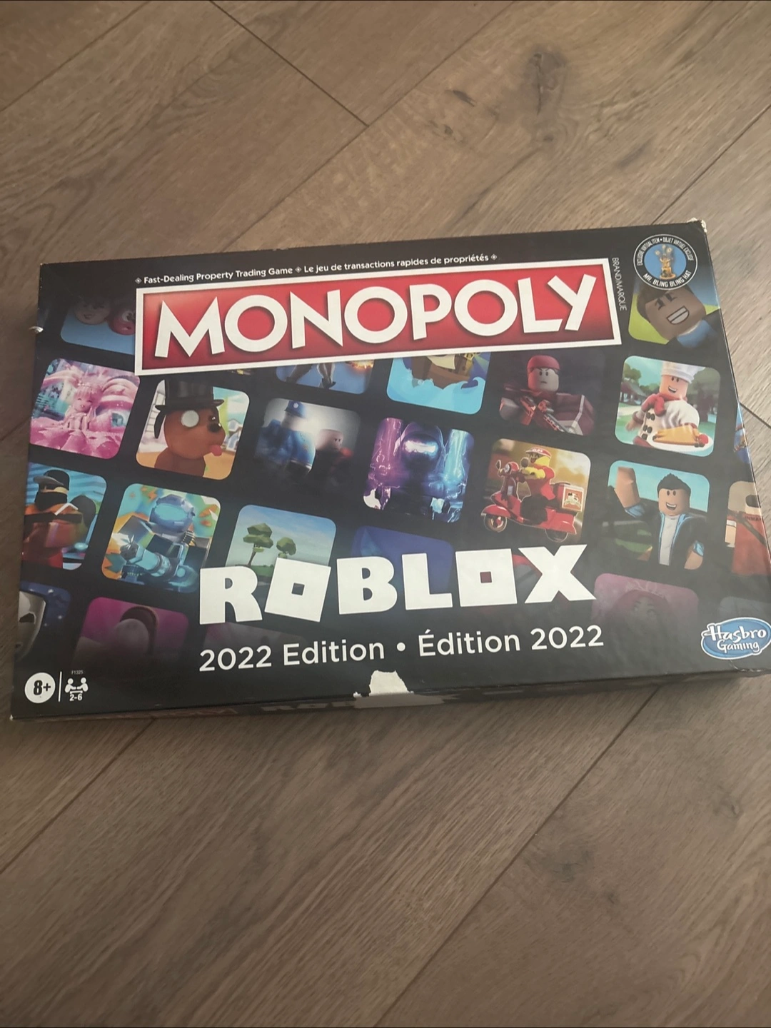 Monopoly Roblox edition board game. 2022 edition. Fast-dealing property trading game. Ages 8+. 2-6 players.