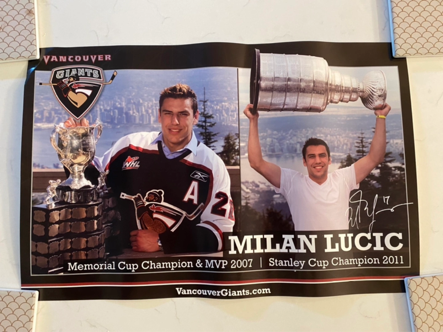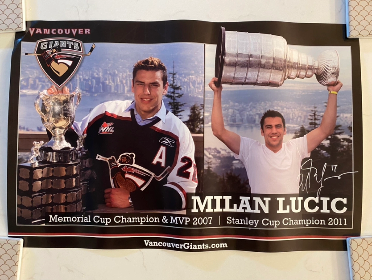Vancouver Giants Milan Lucic Memorial Cup & Stanley Cup Champion Poster From 2011 Measurements : 11 x 17 inches