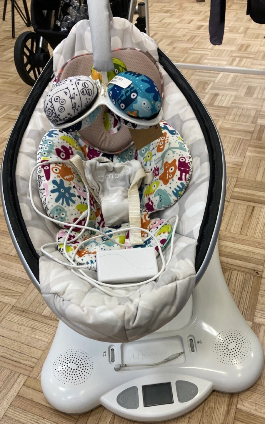 Selling a gently used 4moms mamaRoo baby swing. It's in great condition and ready for a new little one! The swing features multiple motions and speeds to soothe your baby. It also includes a power adapter.
