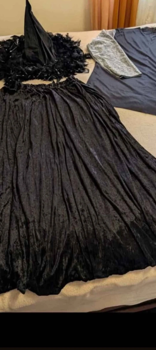 $35 Price is Firm Selling a black witch costume. Includes the witch hat, skirt, and gloves. Perfect for Halloween or costume parties!