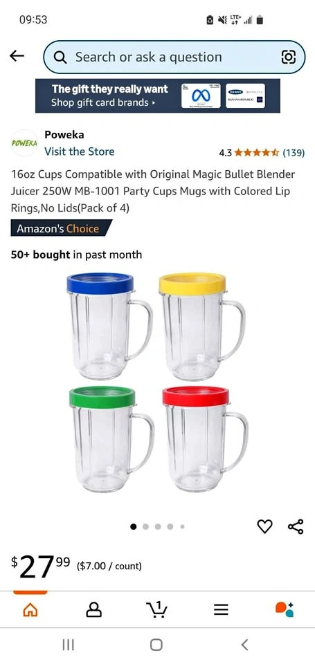 16oz cups compatible with Original Magic Bullet Blender 250W MB-1001. Includes coloured lip rings. Pack of four. I have lids as well. Amazon selling without lids. All are brand new. Open for offers