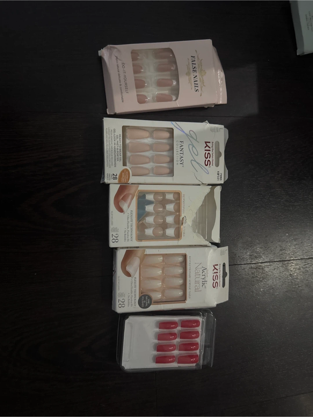 Selling a bundle of false nails! Includes sets from Kiss, Revolution, and Acrylic Natural. All are new and unused but the box’s are a bit damaged, ready for your next manicure! Selling all for $10 and 1 for $3
