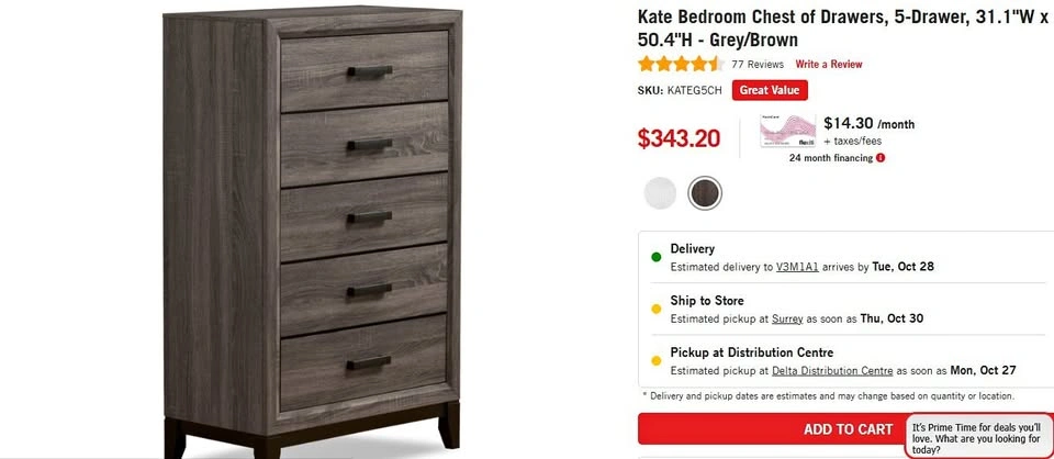 Purchased from The Brick – In excellent condition! It’s been kept in a closet and barely used. Solid and sturdy piece of furniture, looks really nice and well-built. ✅ Clean and ready to use ✅ From a smoke-free, pet-free home Width: 31.10" (79.0 cm) Height: 50.43" (128.1 cm) Depth: 16.38" (41.6 cm) Please message to arrange a pick up. Thank you.