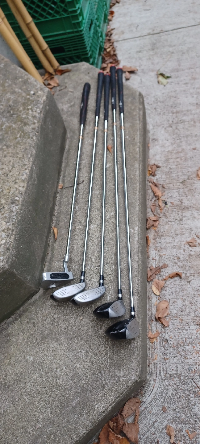 Selling a set of 5 used golf clubs. They're in decent condition and ready for the course! Perfect for someone just starting out or looking for an affordable set to practice with PLEASE CALL NOT TEXT.... 519 729-5862 415 Victoria st south kitchener